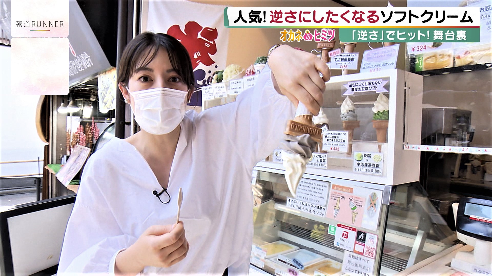 この店のソフトクリーム、逆さにしても落ちないヒミツとは…。