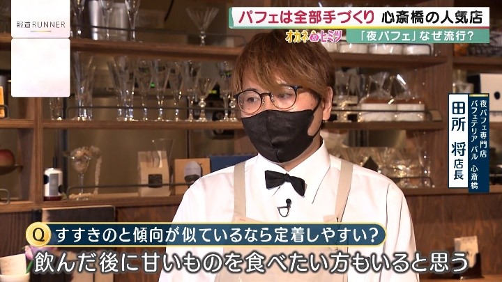「すすきので働いていたんですけど、そちらも大阪と同じように若い方から年配の方までご来店されていて。終電過ぎた後とか、ラストオーダーギリギリにくるお客様もいるので、そういった傾向は北海道に似ているのかなと思っています。飲んだ後とかに、甘いものを食べたいという方もいると思うんです。そういったニーズにうちのお店は合わせられているというのは強みですね」