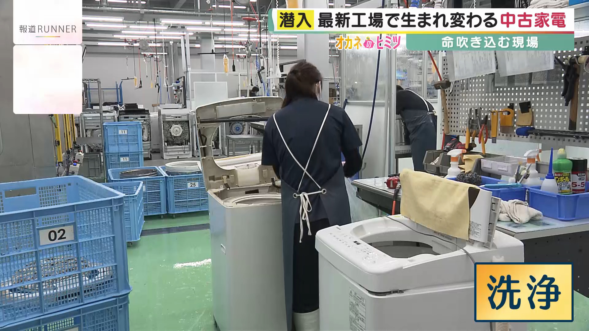 これだけの洗浄と点検を繰り返し、自信を持って全国の店舗へ出荷されていきます。 この工場では、リユース品の洗濯機のほか冷蔵庫やテレビ、エアコンが1日あたり400台生産されています。