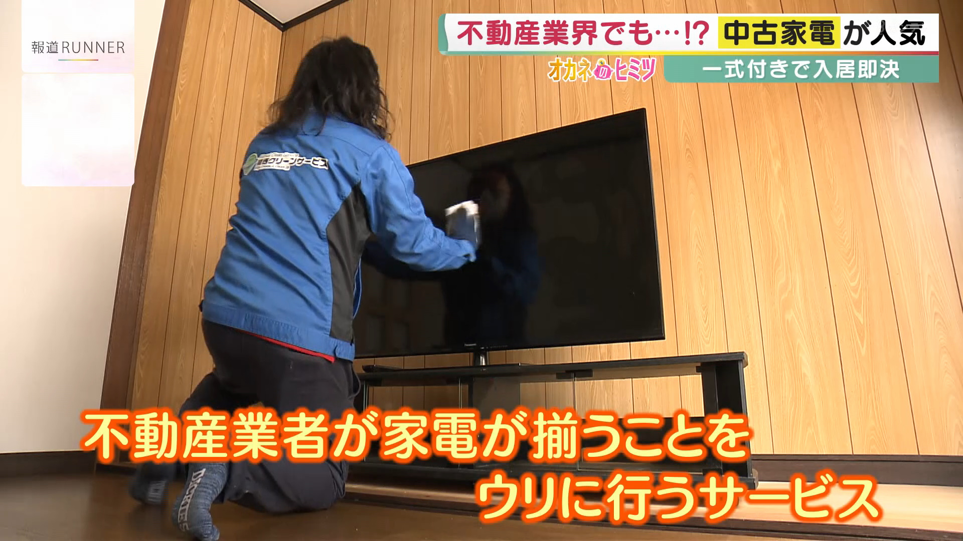 今回取材した女性は、引っ越しを機に家電の買い替えを検討していましたが、予算面で断念。そんな時、中古家電が一式で付いてくる物件を見つけ入居を即決しました。 この女性が手にしたのは、テレビや冷蔵庫、洗濯機などあわせて8点。リサイクル業もおこなう不動産業者がサービスとして行っていて、家電一式が無料で揃うことをウリにしています。