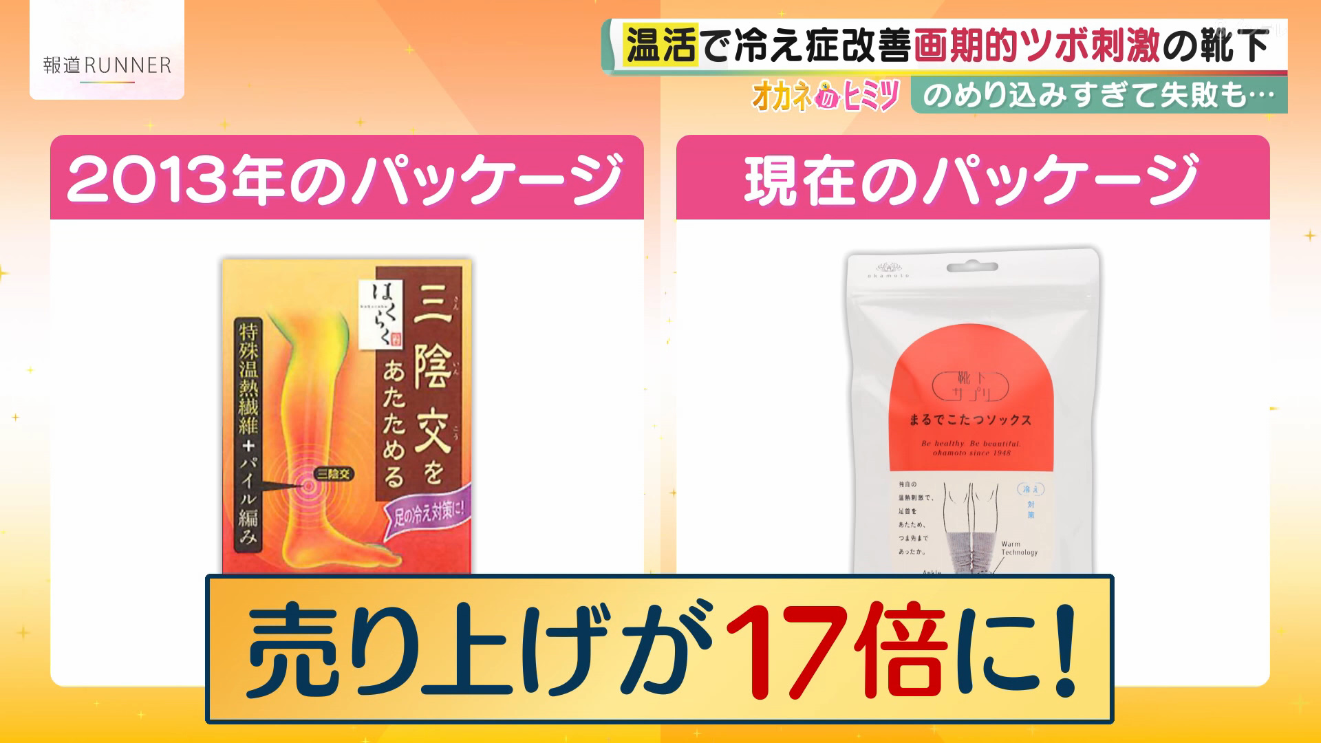 発売から2年後、試行錯誤の末に今のパッケージにリニューアルにしたところ、売上はなんと17倍に。ツボを刺激して得られる温かさが評判を呼び、その後シリーズ商品もどんどん開発され、順調に売り上げを伸ばしていきました。