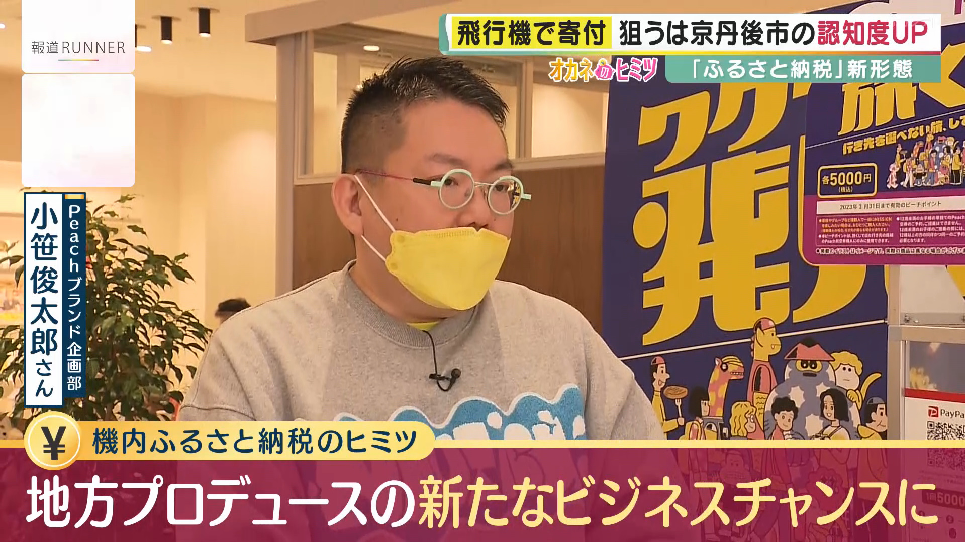 「実は京丹後市、観光に来られる方の9割ぐらいが近畿圏の方なんですね。首都圏とか遠方の方はなかなか来られていないというところがありまして、ふるさと納税を寄付いただくことに加えて、観光パンフレットの代わりじゃないですけど、観光としての魅力も発信できる。帰りの飛行機とかで『次はどこ行こうかな』って考えていたりするんですよね。そういった旅のマインドが高い機内で町のものを知っていただいて、次はじゃあ京丹後市に来てみようかなって、そういうような流れを作りたいんです」