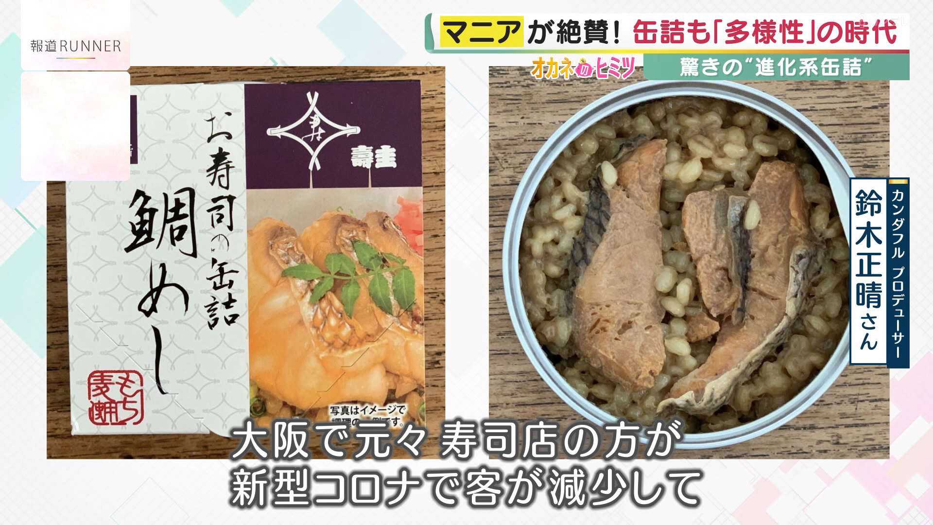 「お寿司の缶詰というのがありまして、実際はお寿司ではなくてシャリに具が入った混ぜご飯みたいなものです。大阪で元々寿司店をやっていた方が、コロナで客が減ったので、自分たちでできるおいしい缶詰を作ろうとすごく苦労したらしいです。だから作っている人の想いがギュッと詰まっているんですよね、缶詰には」