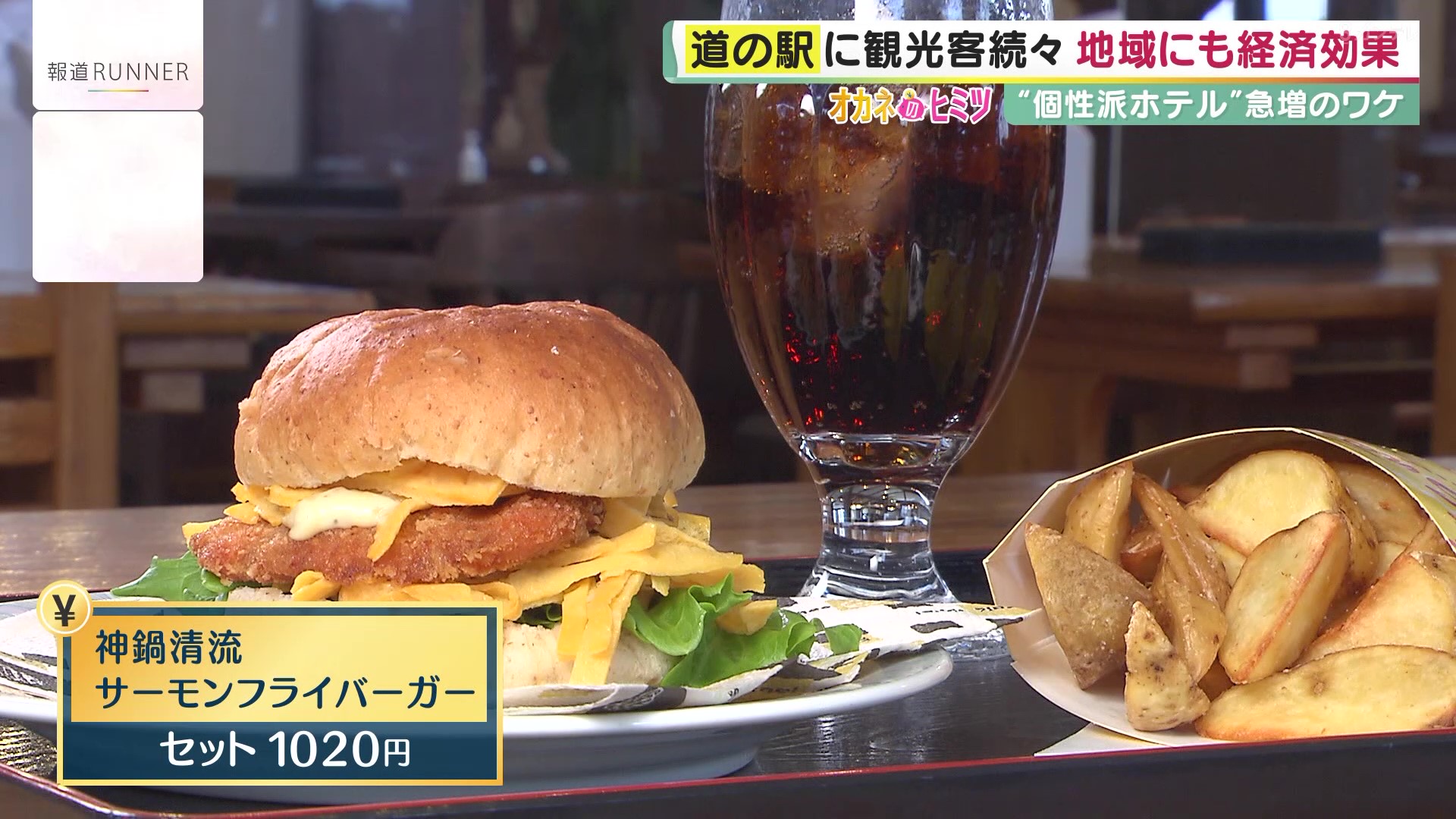 ホテルにはレストランがないため、道の駅の利用客が増加。地元の食材を使った「サーモンフライバーガー」などが外国人観光客にも人気で、売り上げが約2割上がったそうです。