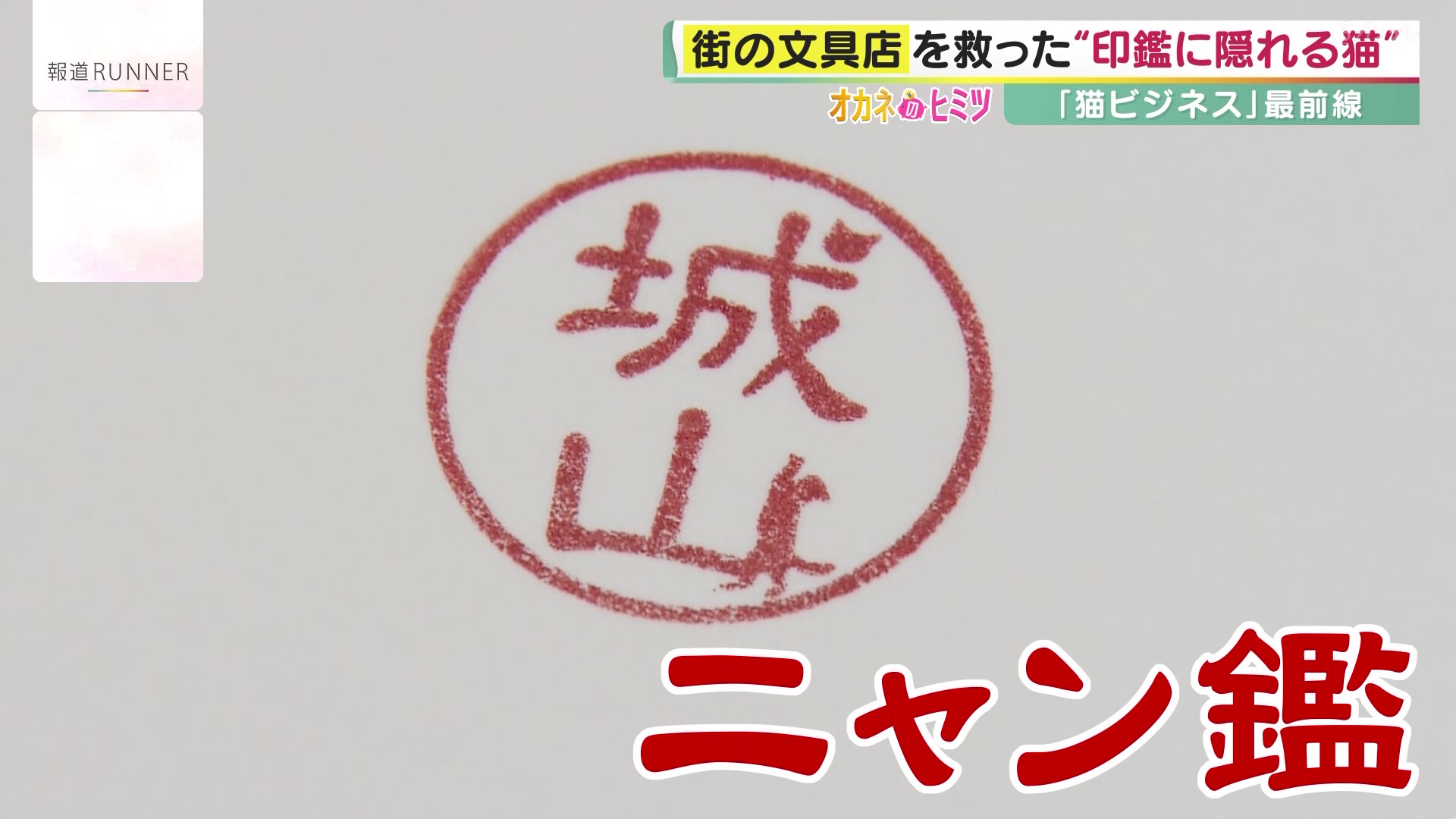 「はんこを、色々オリジナルのものを作ってるんです。見た目は普通のはんこなんですけど押してみると『山』の一番右の縦線や、『城』の点の所に猫がいます」