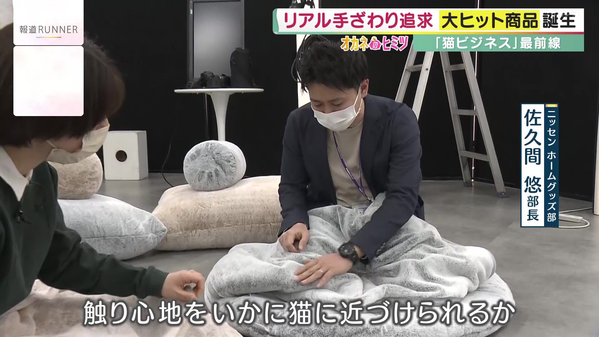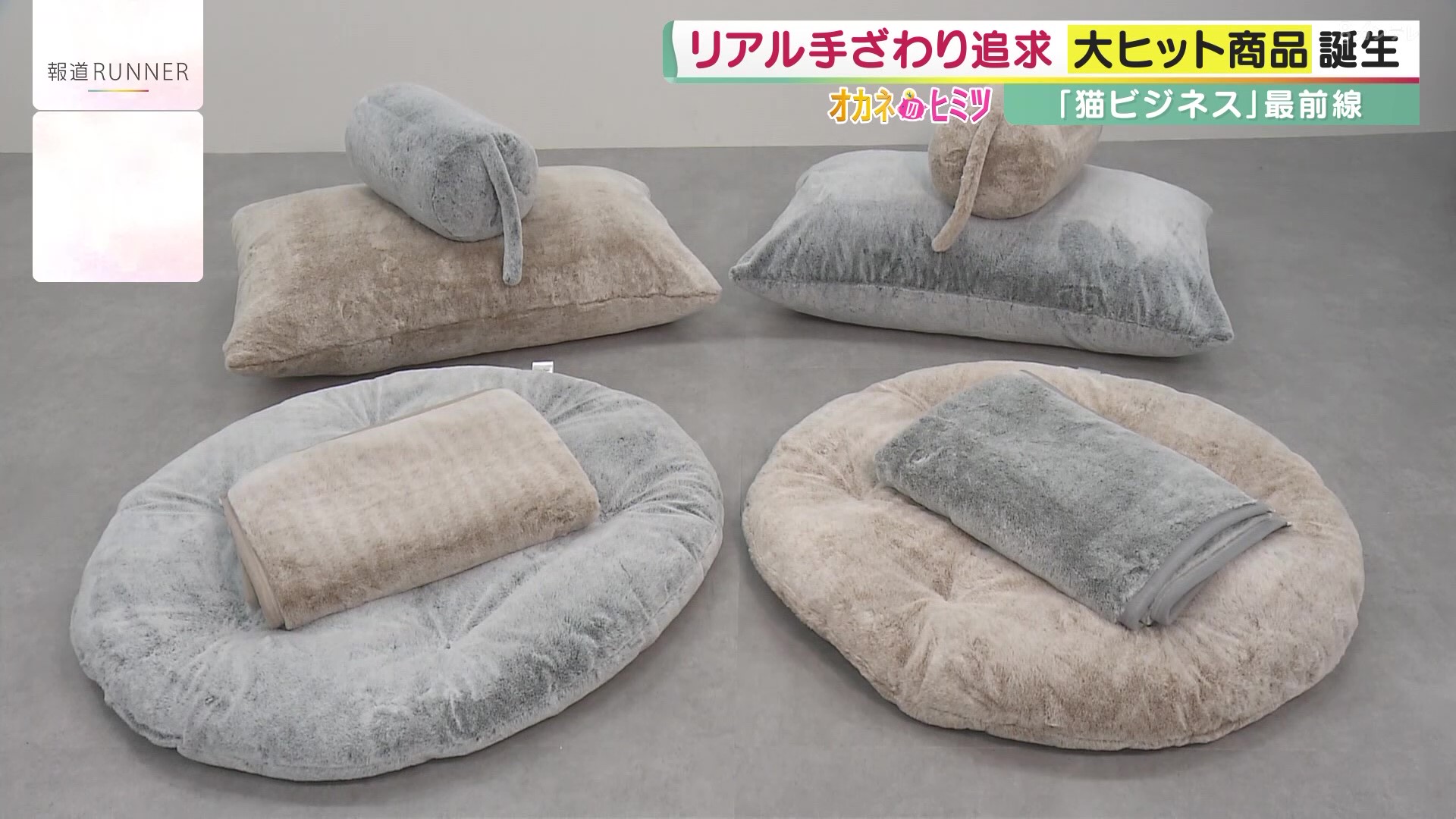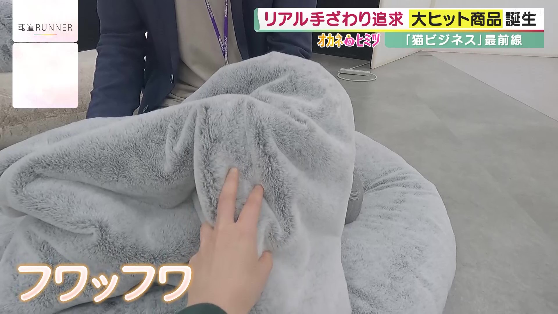 「この触り心地をいかに猫に近づけられるかっていうところから始まって、数十種類の生地を工場や販売した商品からかき集めて、パートや社員の猫を飼うメンバーで『どれが一番近いか』というところから始まりました」