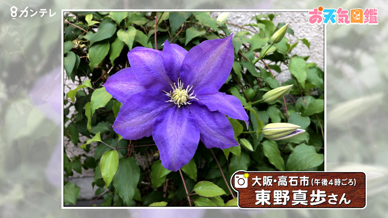 このクレマチスは、お母様が10年ほど前から育てていて、今年は例年に比べてつぼみは少なかったそうですが、いつもより早く咲いたそうです。