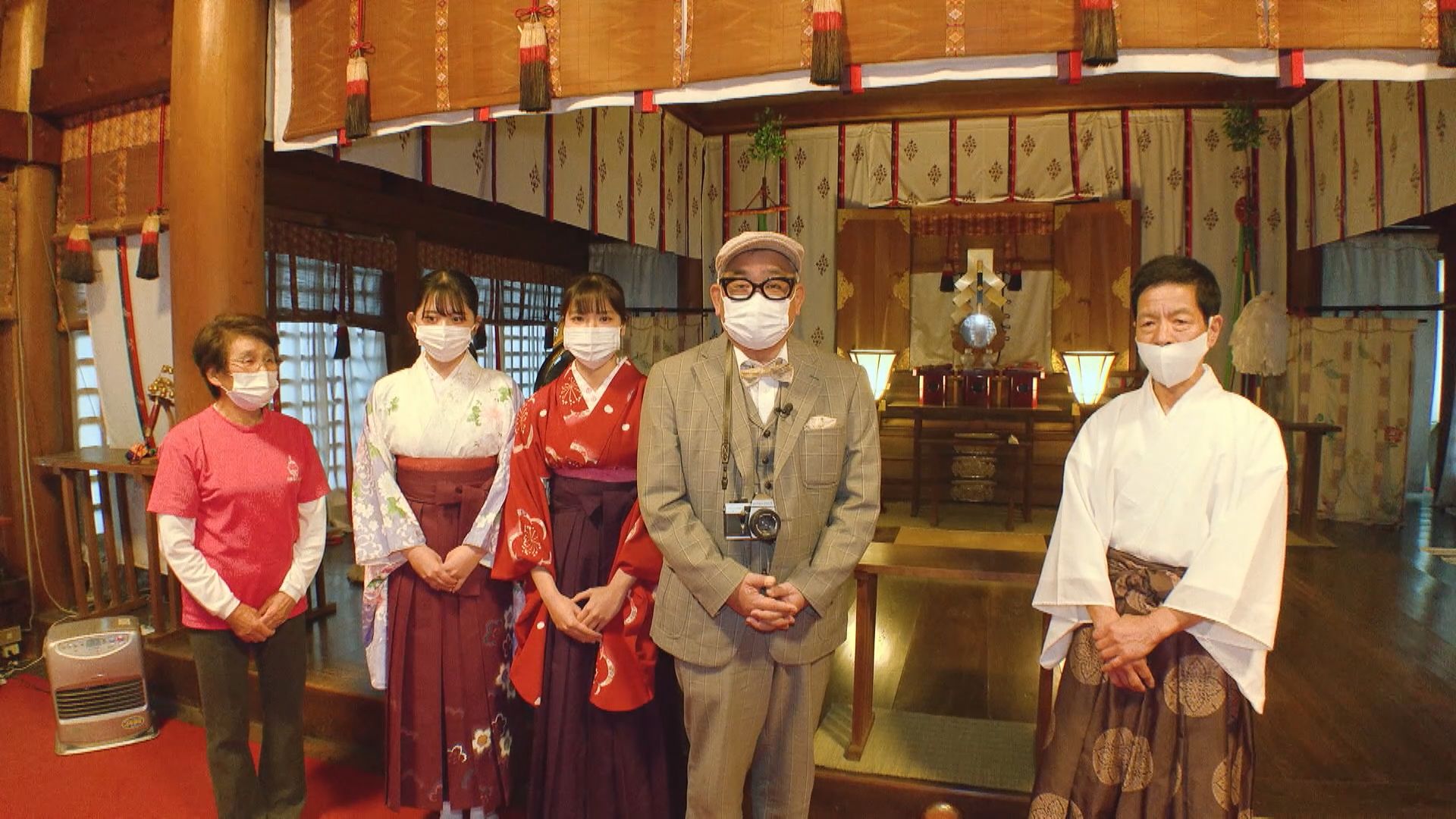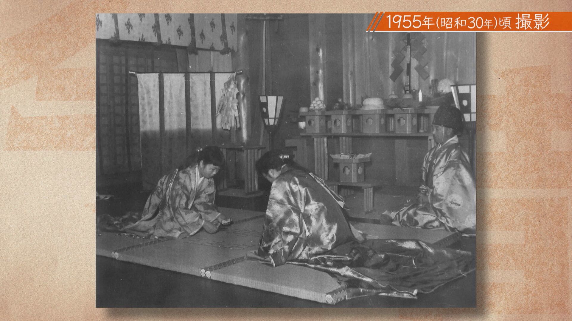 「今日の写真は、何これ?なんかすごい衣装を着てはって、神様にささげる何かがあり。(2人の女性を指し)ここ、何してるの?これ(札)を何かして、かるたみたいなものなのかな?」