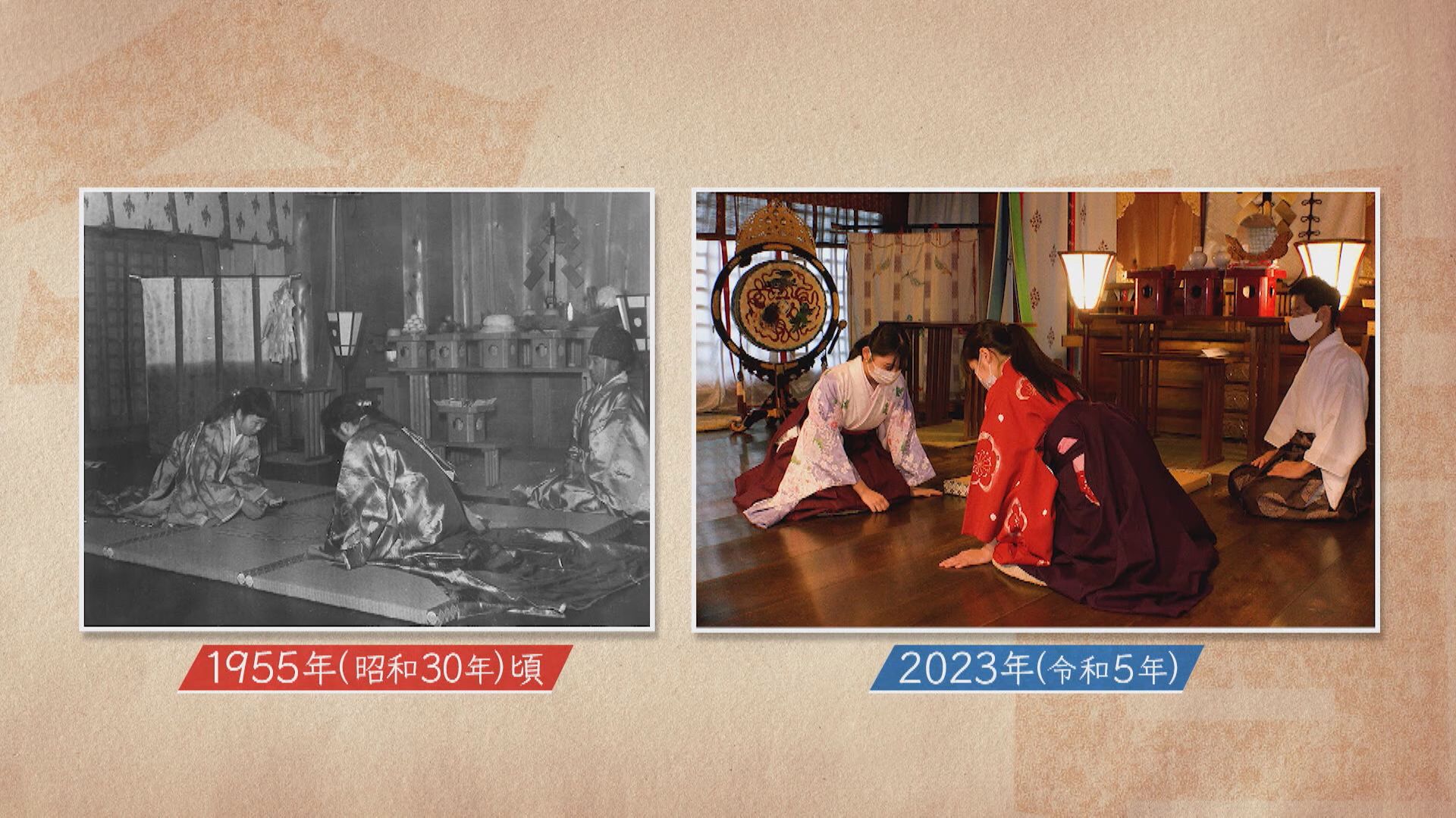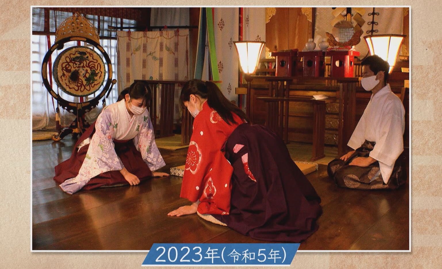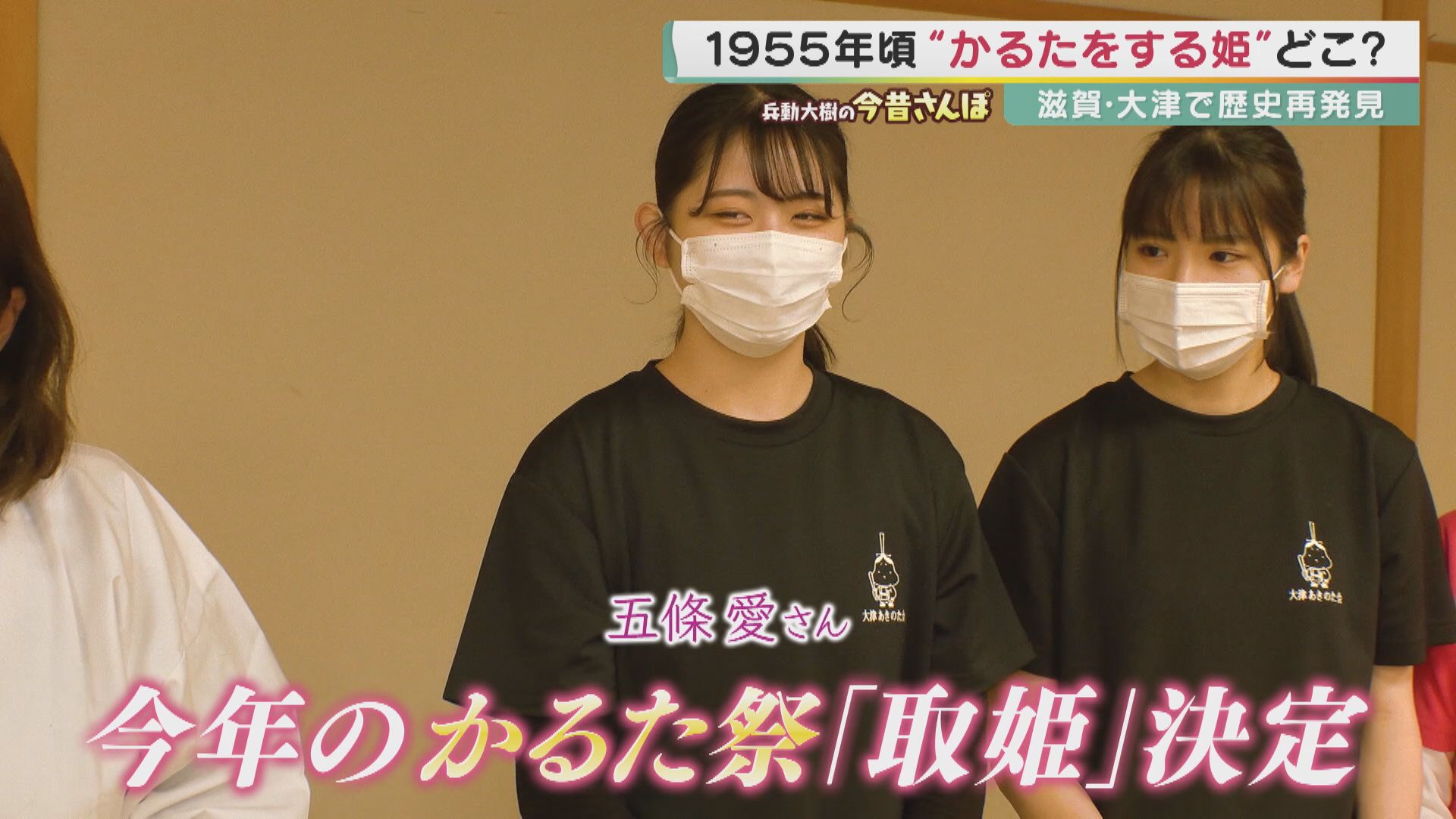 「お正月に『かるた祭(さい)』っていうのが近江神宮でありまして、その時の神事なんです。お二人並んでいるのが『取姫(とりひめ)』なんですけど、2023年に取姫をされるのが五條さんなんです」