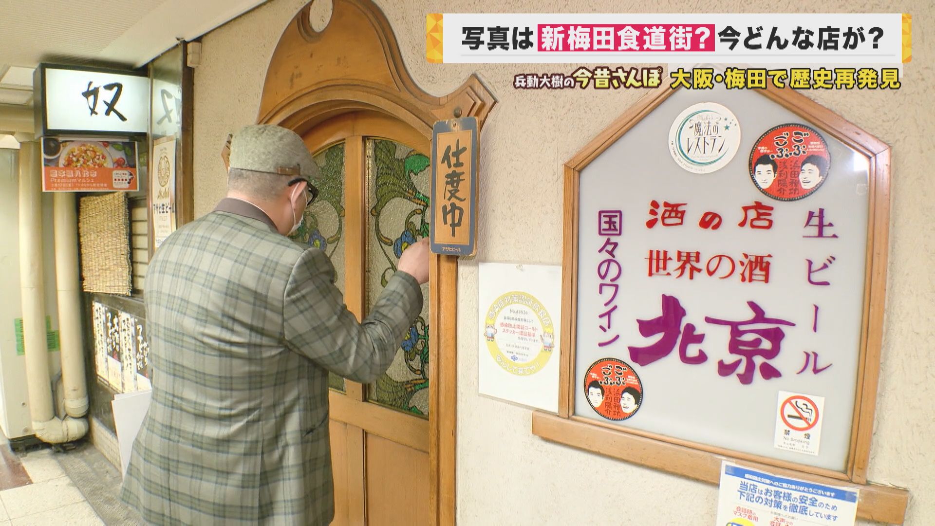 「『支度中』って書いてる。(扉をノックして)失礼します。すいません。関西テレビの『newsランナー』いう番組で、よしてもらってる兵動いうんですけど。ちょっと入れてもろていいですか?ここは立ち飲み屋さんになるんですか」