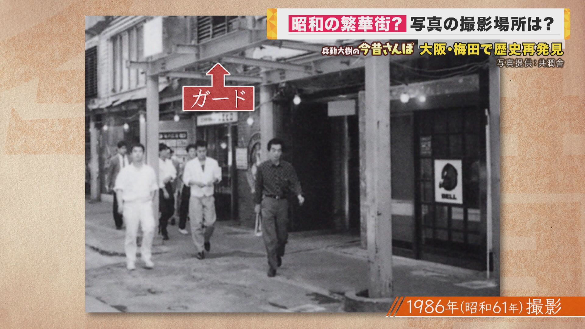 「昭和61年いうたら最近やもんね。おれらの感覚でいうたらやで。これ梅田?せやけどなんかガードができそうな感じ。ほんで歩いている人も昭和61年感がすごいですね。まあこんな感じでしたわ。じゃ、フラッと探しますか」