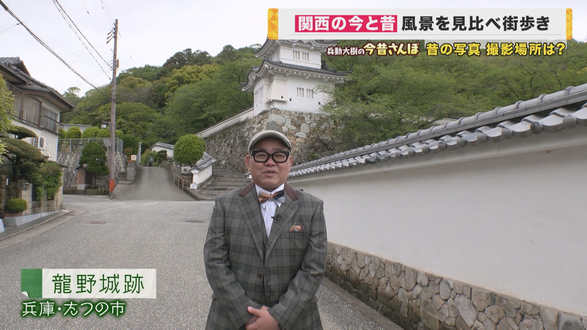 「今回はですね、兵庫県たつの市の方によせていただいております。後ろにあるのは龍野城という、たつのにお城があった跡地というんですかね。やぐらとかは立派に建っておりますけど、ええとこですね。場所でいうたら姫路と赤穂の間ぐらいでございます。というわけで、たつの市からスタートでございます」
