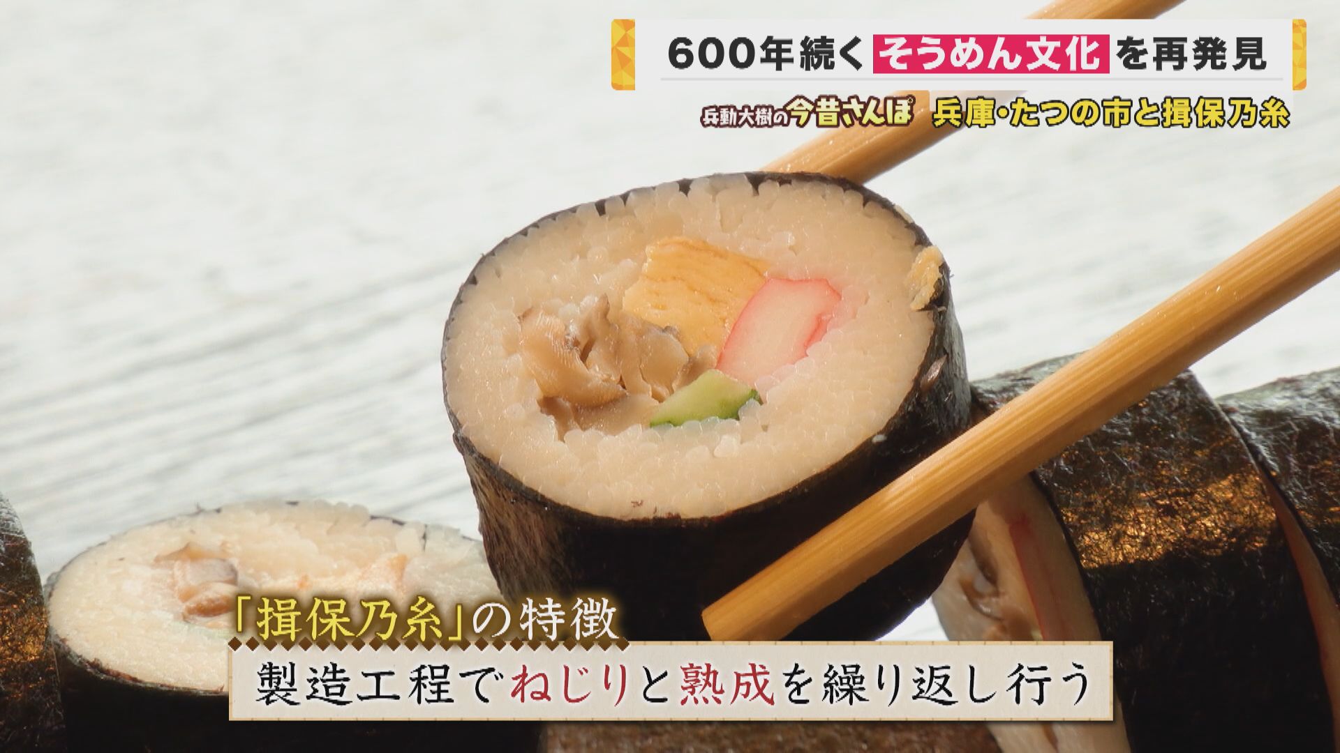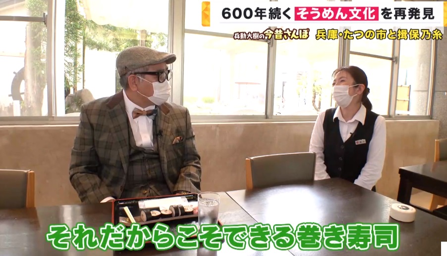 「そうですね。揖保乃糸の特徴として、ねじってねじって、そして時間をかけて熟成させながら延ばしていくっていう風に作っていくんですけども、口の中でプチッとしたような食感を楽しんでいただける。それだからこそできる巻きずしです」