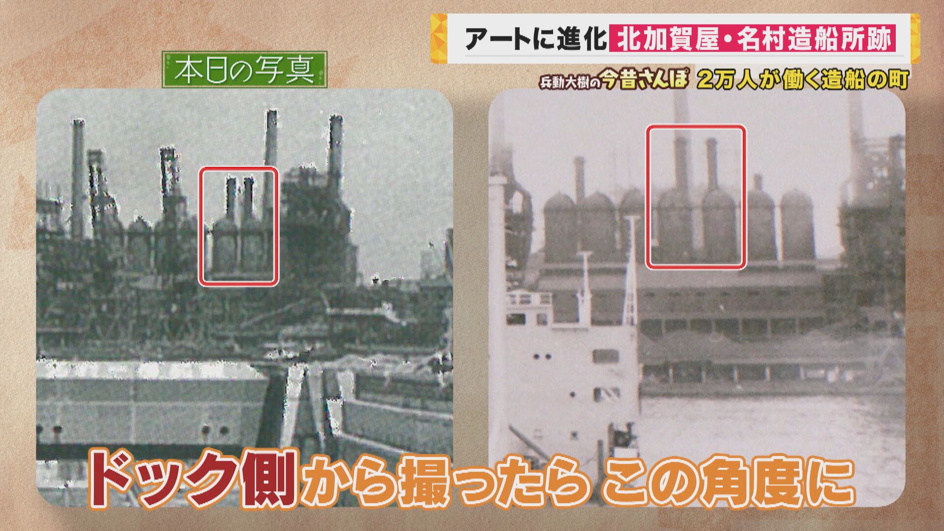 「(ドックを上空から撮った写真を見ながら)これがドックか。(持ってきた写真は)ドックやという話を聞いたんで来たんですけど、ここ昔大きい造船所が名村さん含めて3つもあったと。この写真はどこの造船所のドックなのか」