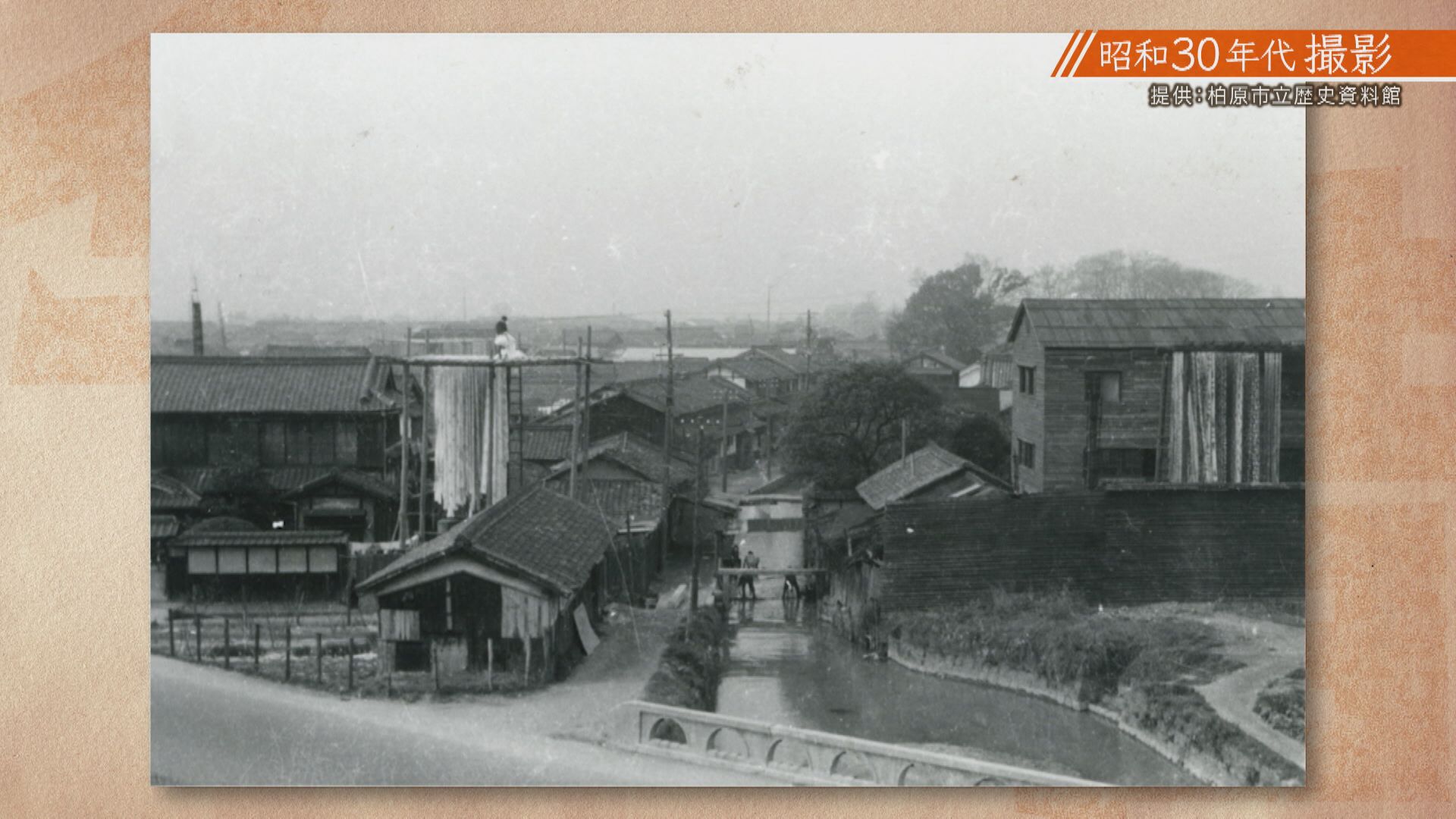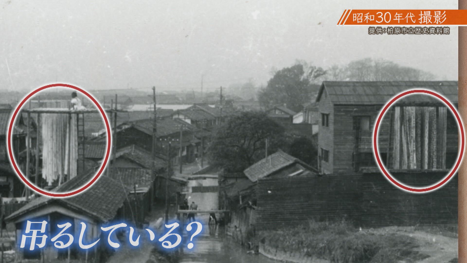 【武田たばこ店 武田康彦さん】「(写真を見て)昔は柏原の染め物が有名で、手拭いとか浴衣にしていた。子供のころは川で流してはるのとか、上からつるしてるの見た。(つるすのは)乾かしてはるのかな。はっきりわからんけど、昔はたくさんつってるとこあった。今は外につってるのは見ないですね」