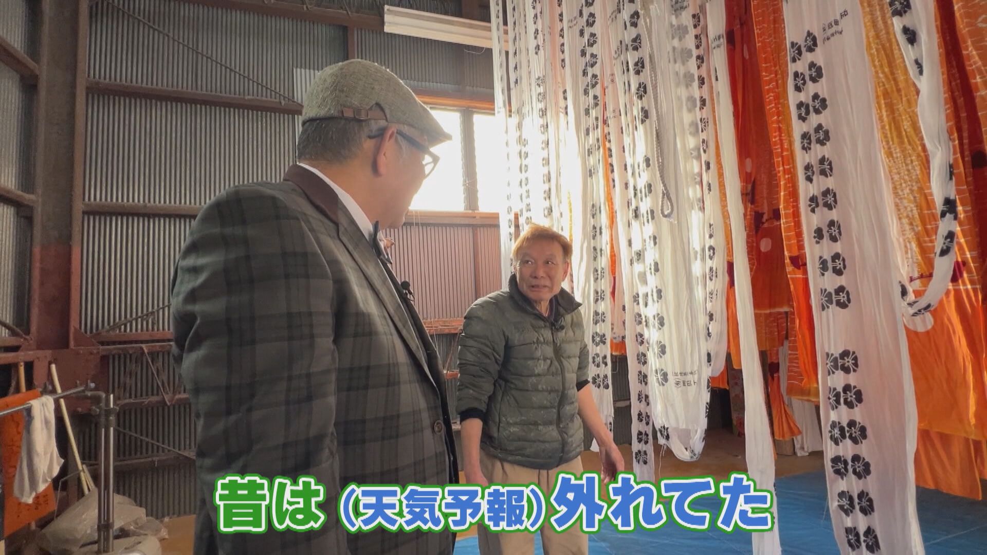 【神奴染工場 神奴典児さん】「昔は外で干してましたから、雨降ったら急いで上まであがって、布を下ろしてました。昔は天気予報がよう外れてた」