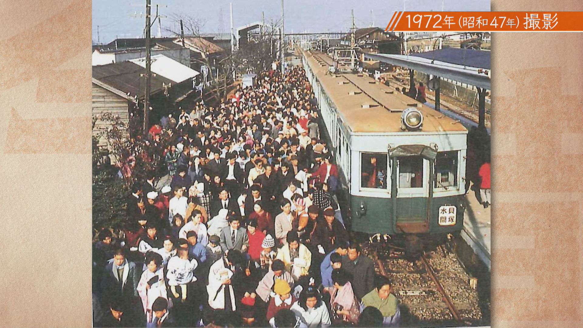お正月に水間寺がにぎわうのは変わっていませんが、写真のように大勢の人が電車から降りてくる光景は、今は見られないとのこと。