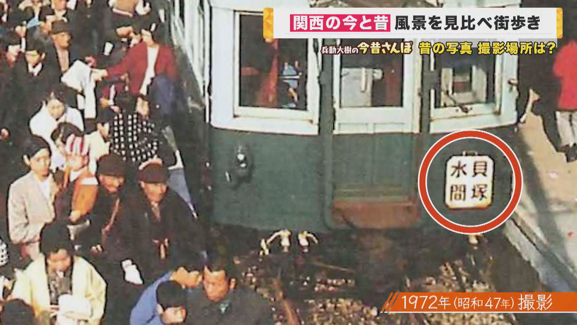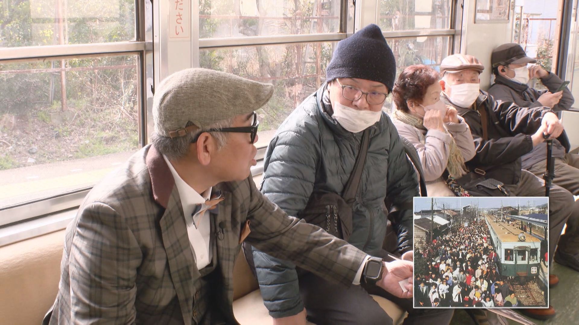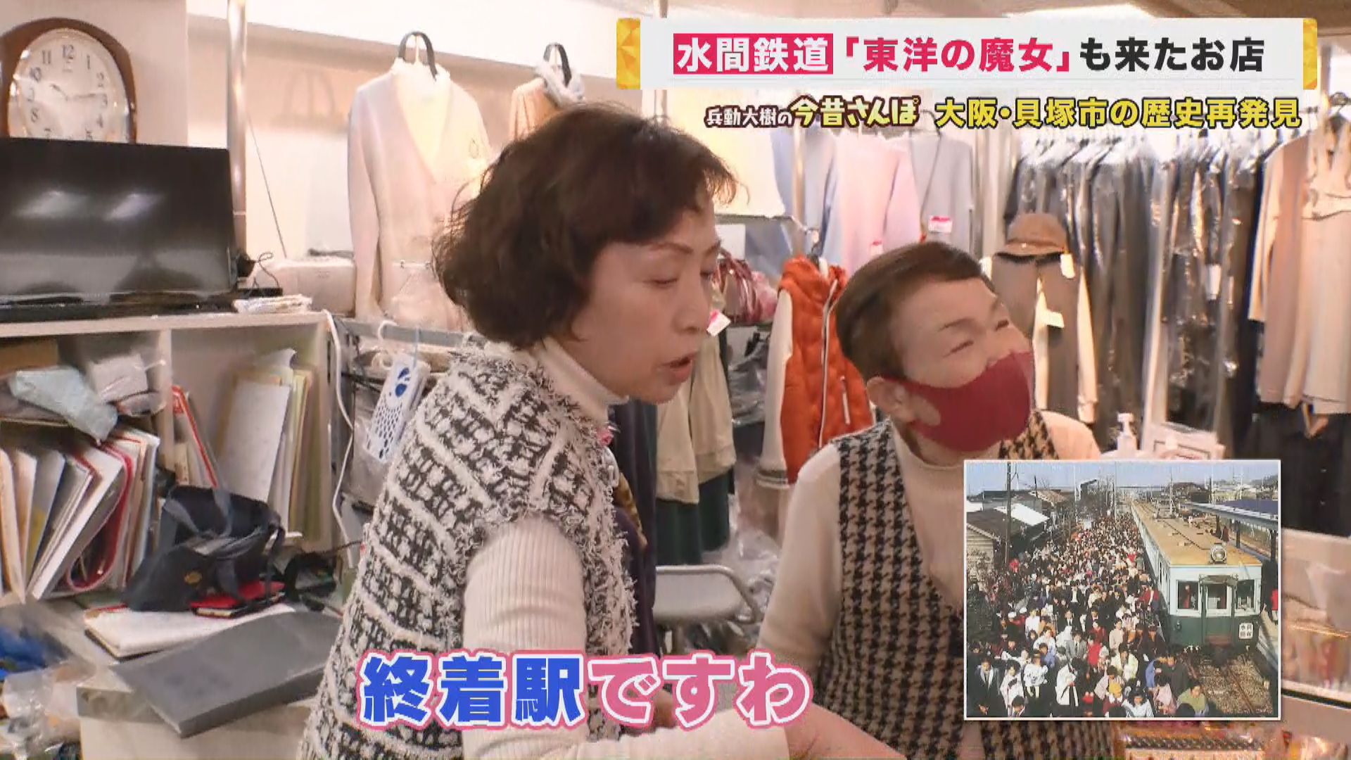 【兵動さん】「すごい人やね。“今昔(さんぽ)あるある”でいうと、“この電車が最後の日”とかは結構あるんですよ。電車の車体に(書いてあるのは)貝塚~水間(みずま)の区間ということか。みんなこっち向いているから、(電車を)降りていっているのかな。ちょっと(街の人に)聞いてみる?」