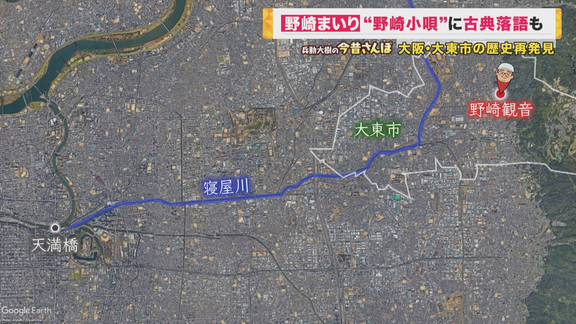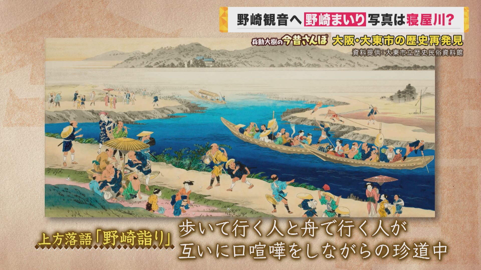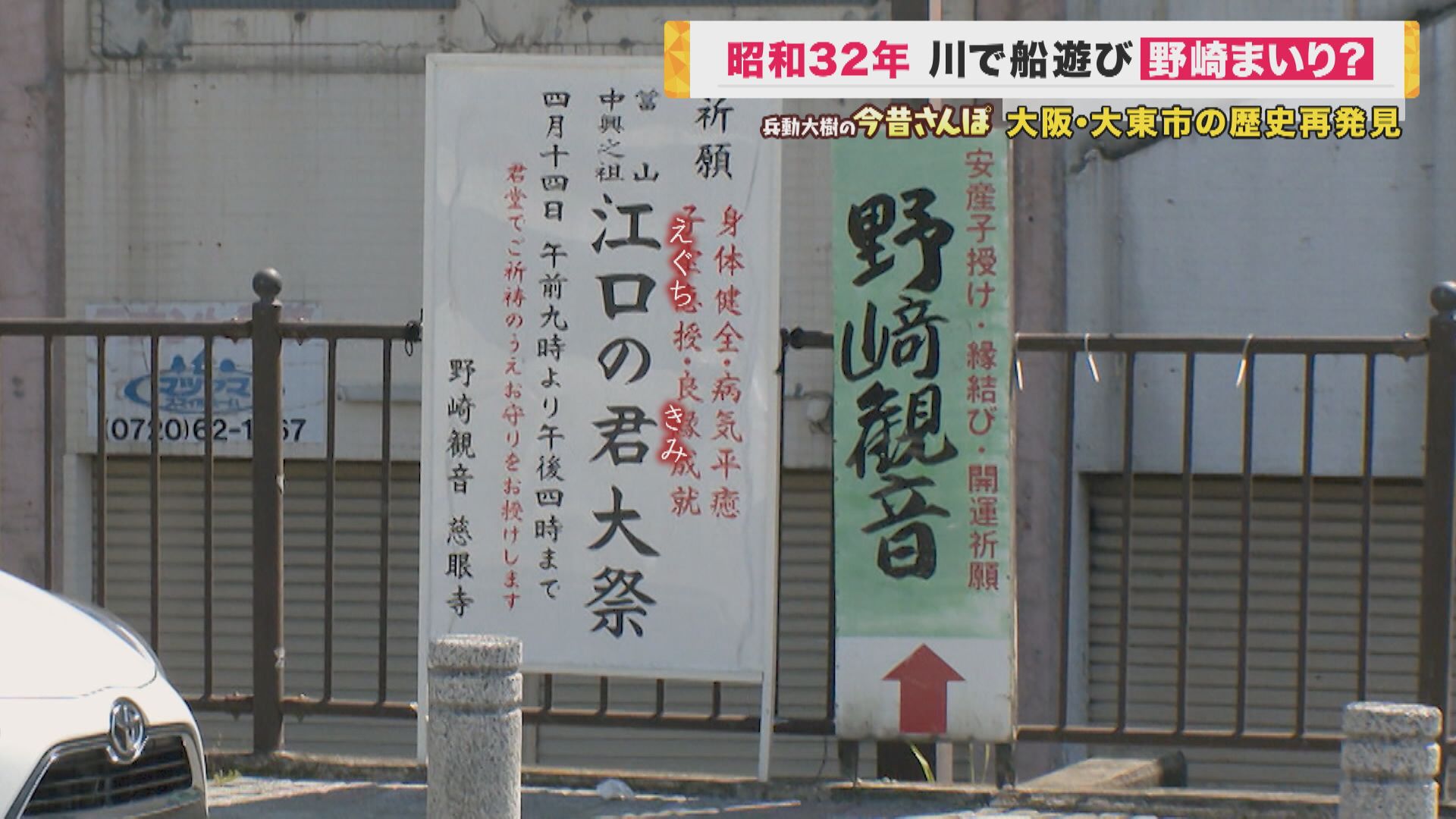 【兵動さん】「川遊びなのか?『大東市』って書いている。ここに『野崎まいり』って書いてますけど、野崎まいりって古典落語があるんですよね。どんな話やったかな。そこまでは覚えてないんですけど。謎が多いですけど、ちょっと行ってみますか」
