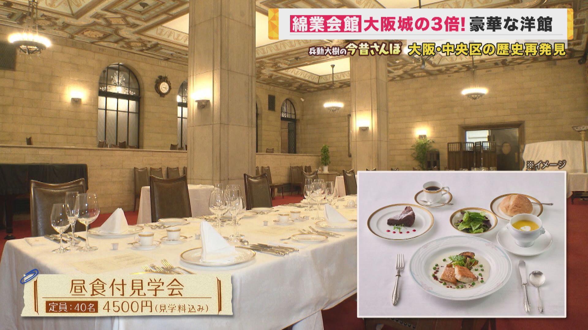 館内見学は抽選ですが、見学料金500円(定員40名)で、日本綿業倶楽部のホームページで受け付けています。特に人気の「昼食付見学会」は、見学料込みで4500円(定員40名)。