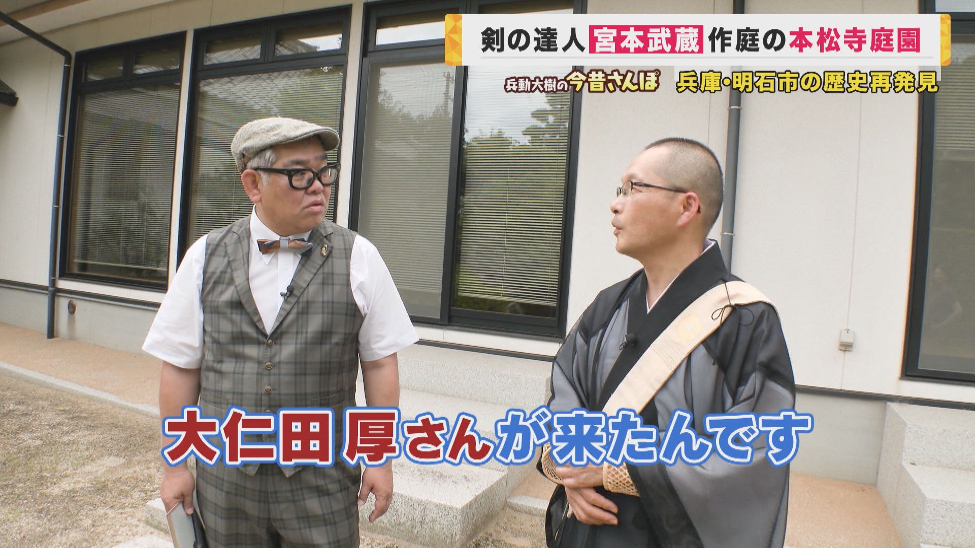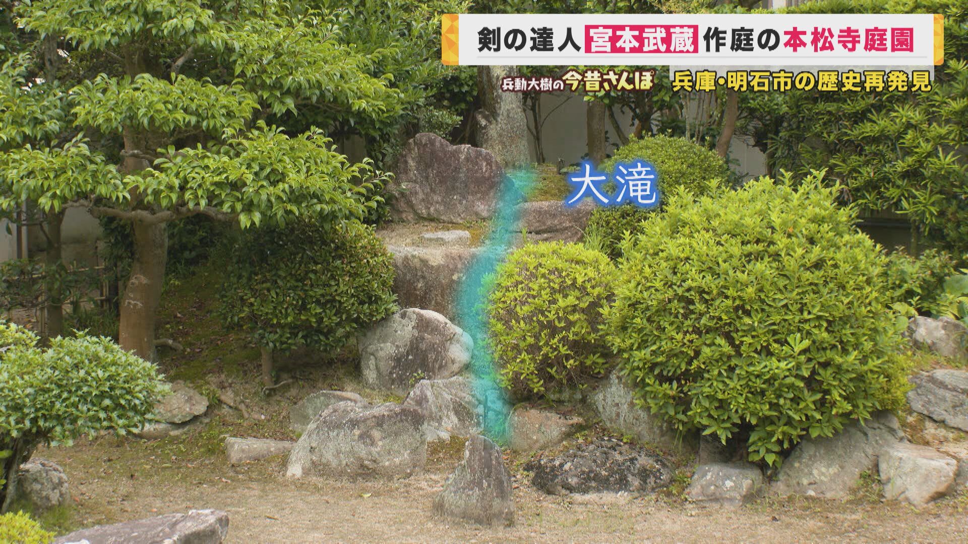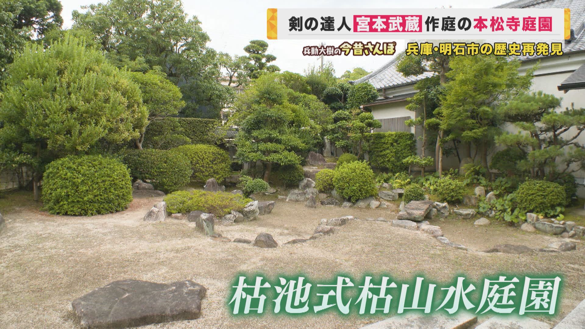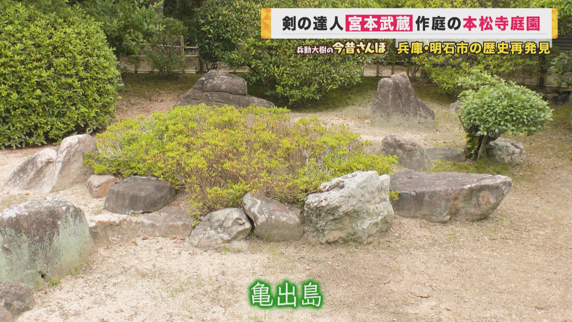 【本松寺 住職 釋 孝修さん】「明石を攻められた時に守ってもらうような都市計画をしないといけないということで、宮本武蔵を呼んだ。その時に宮本武蔵が庭を造っていったという話。他のお寺でも、この下に雲晴寺さんがあるんですが、そこの庭も宮本武蔵が造ったと。それから明石駅の西南に円珠院というお寺があって、そこの庭も造ったんです。みんな似たような形をしている」