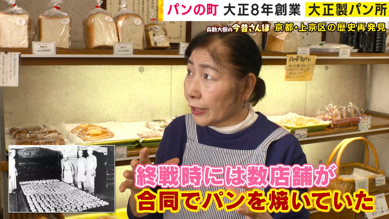 【河戸晴美さん】「聞いているのでは、終戦時には何店舗か合同でパンを焼いていた。小麦粉も配給だった。(パン好きの理由は)私らの西陣では、西陣の織屋さんがパンだと手軽に食べられる。扱っている着物が汁気があると汚れるけど、パンだと乾燥している」
