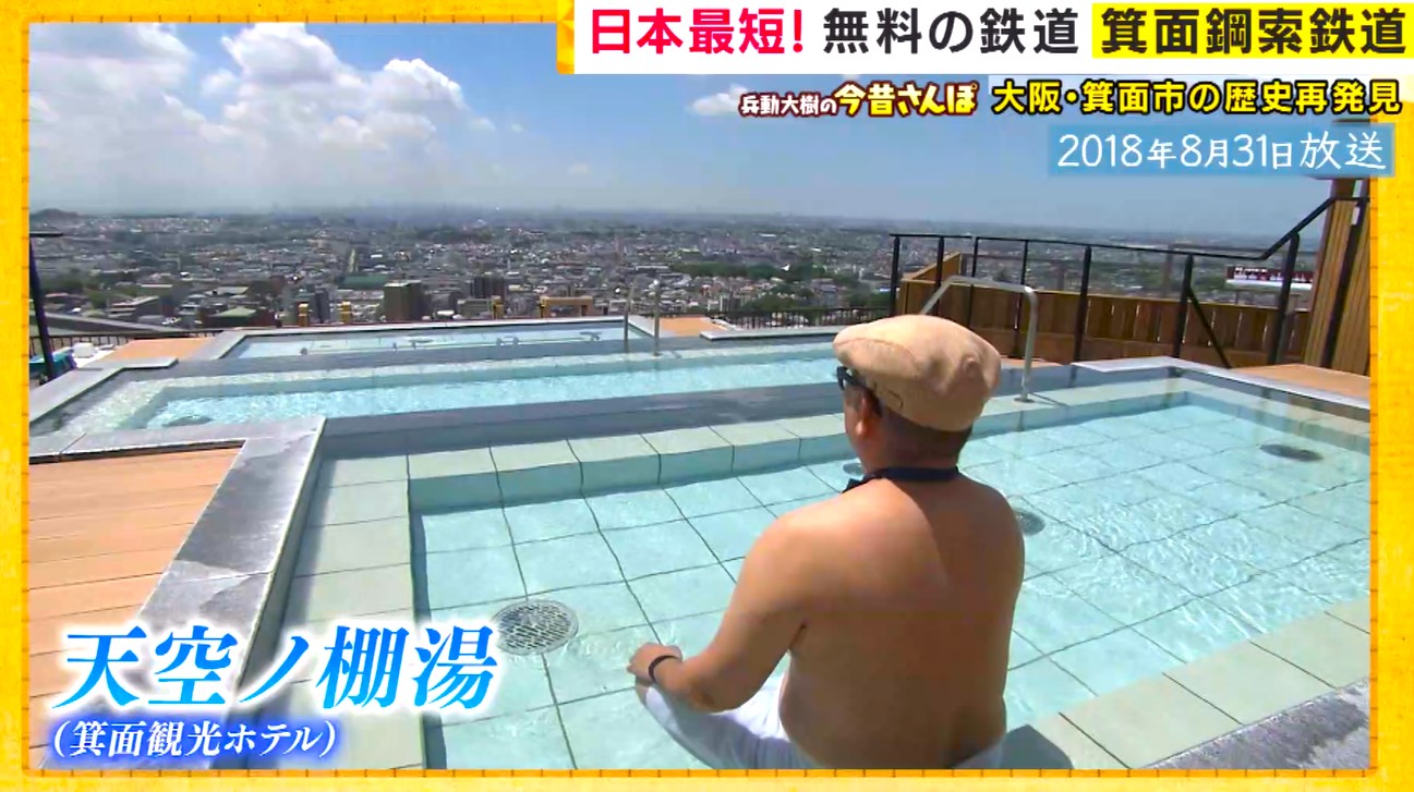 兵動さん、箕面温泉スパーガーデンでケーブルカーの名残りを探します。