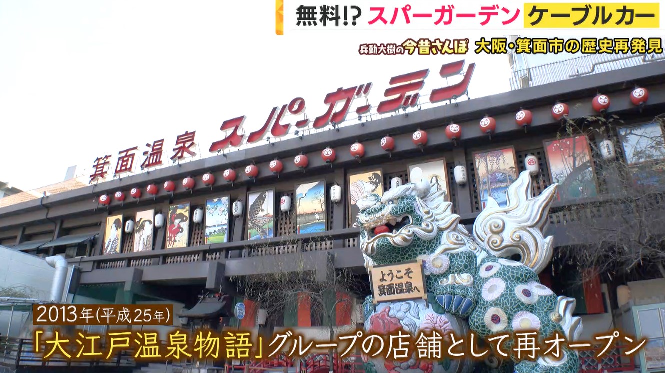 昭和40年に、健康ランドの先駆けともいえる日帰り温浴施設「箕面温泉スパーガーデン」が、5年後に開催される大阪万博に合わせるようにオープンしました。