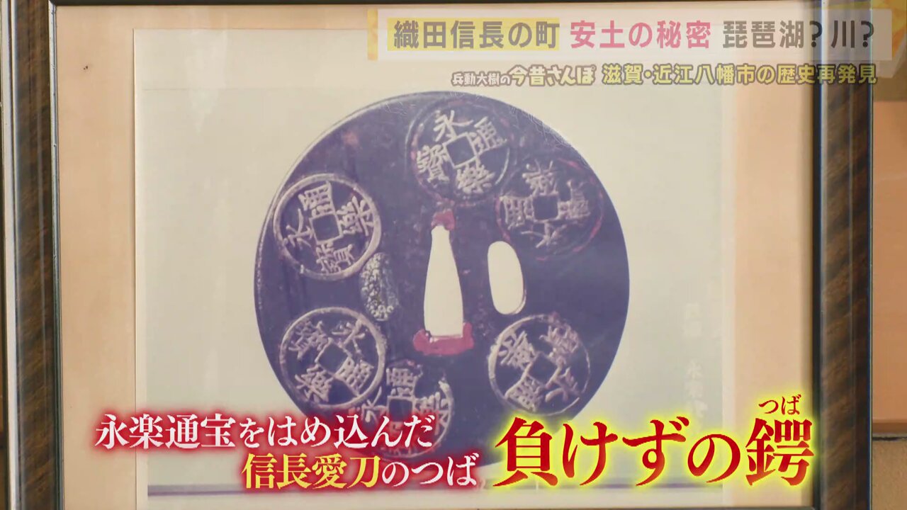 「負けずの鍔」というのは、「合戦に先立ち、熱田神宮で戦勝祈願をした信長は永楽通宝を投げ上げたところ、全て表を向いた。 信長は愛刀の鍔にこの永楽通宝をはめ込み、以降連戦連勝し、天下の名城安土城を築いた」というエピソードにちなんだものなんです。