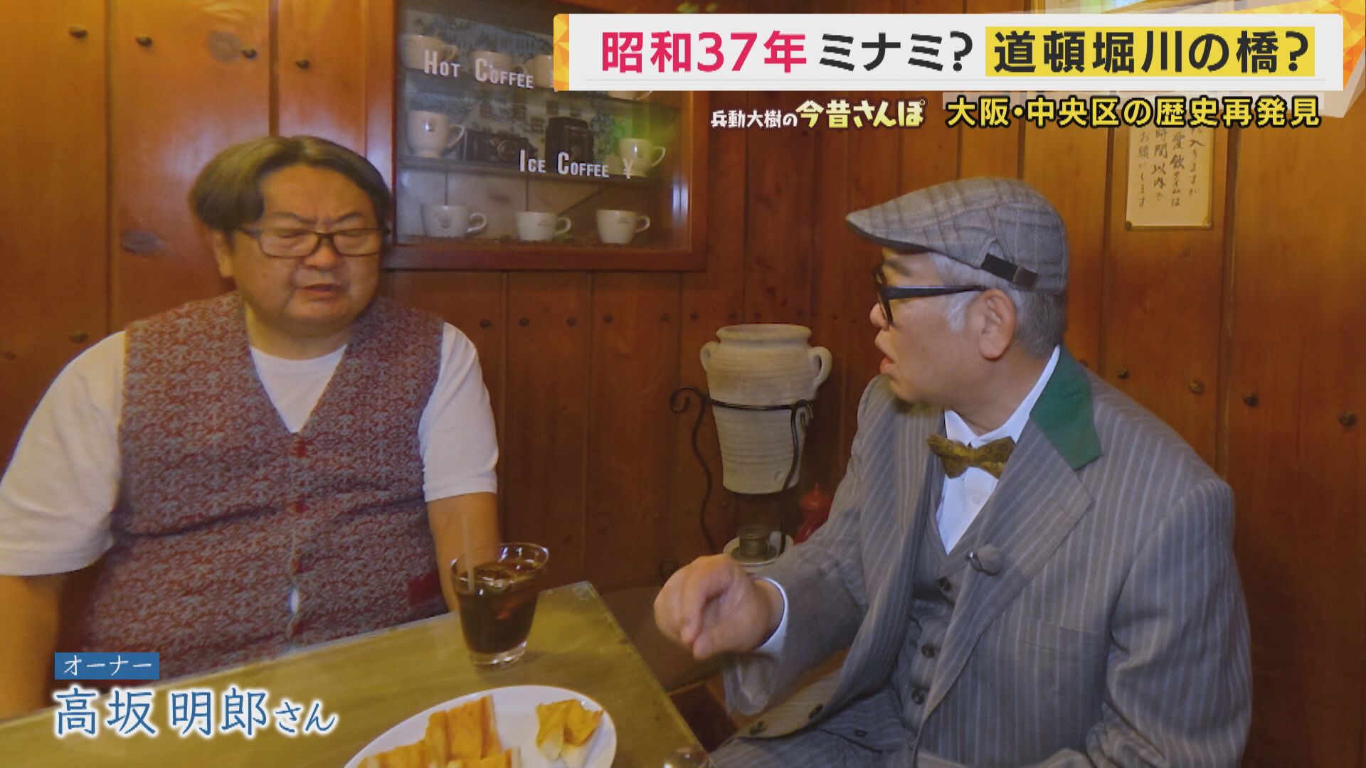 兵動さんはお気に入りの喫茶店「アラビヤコーヒー」に立ち寄ります。1951年創業の老舗で、芸人や歌舞伎役者も通う人気店です。
