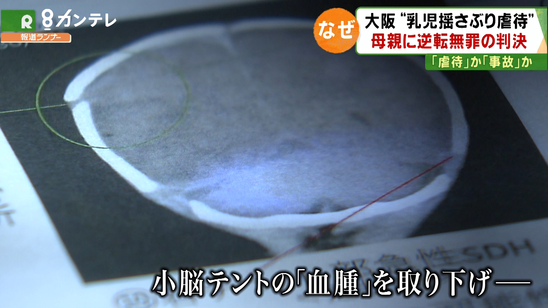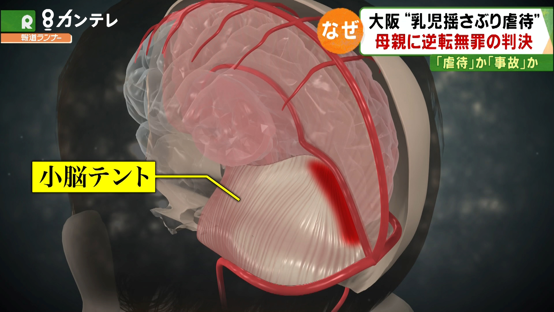 検察は虐待に詳しい小児科医の証言に基づき、「4カ所以上の血管(架橋静脈)が切れている。なかでも、SBSの特徴とされる小脳テントにも血腫があり、こうした硬膜下血腫は揺さぶりでしか説明できない」と主張しました。