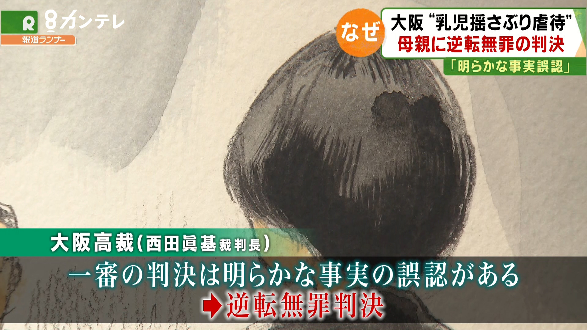 当時生後1ヶ月の長女を激しく揺さぶったとして一審で有罪判決を受けた母親に対し、大阪高等裁判所は、逆転の無罪判決を言い渡しました。