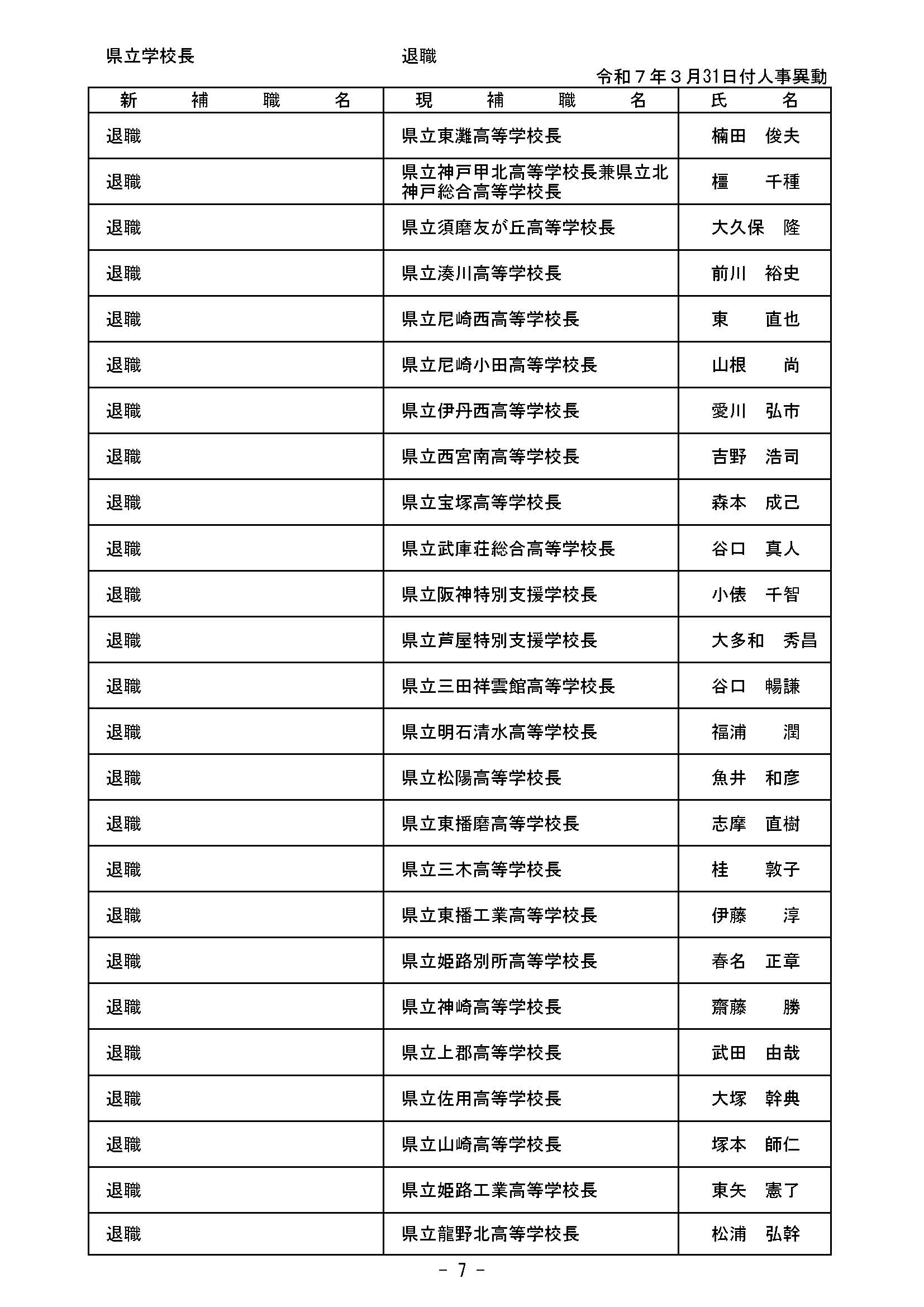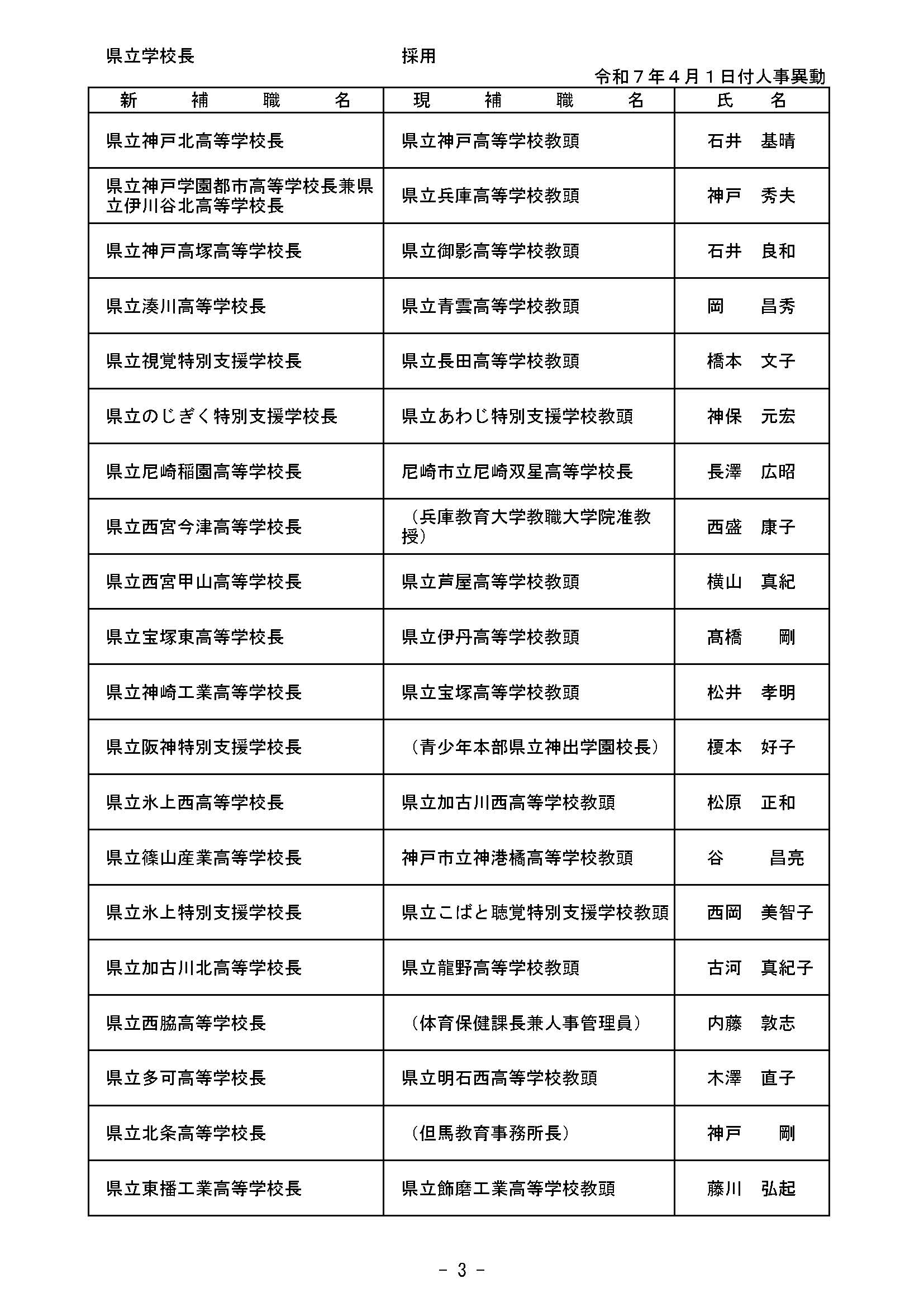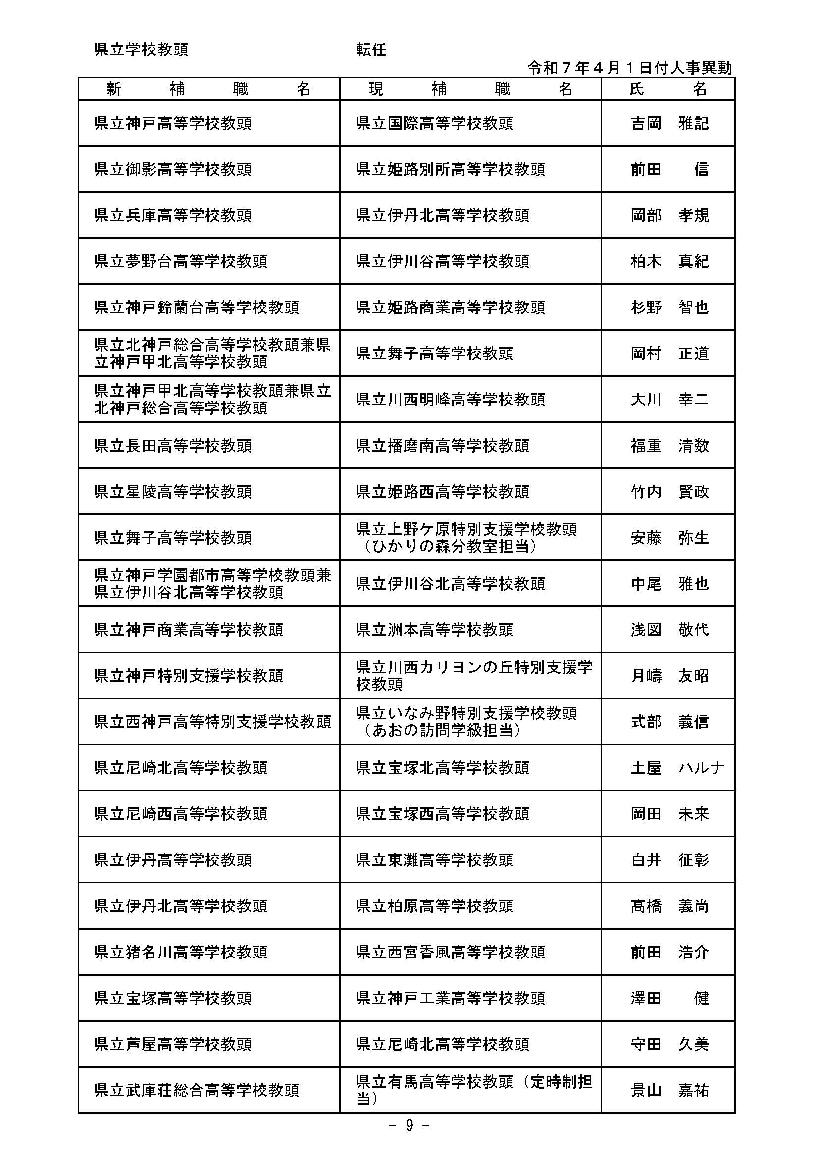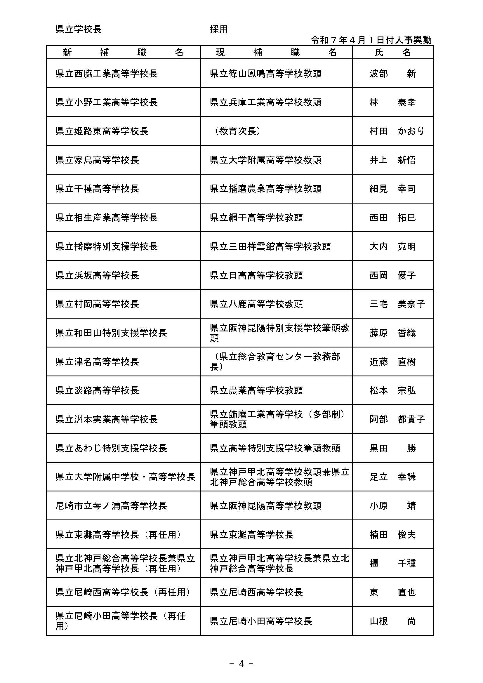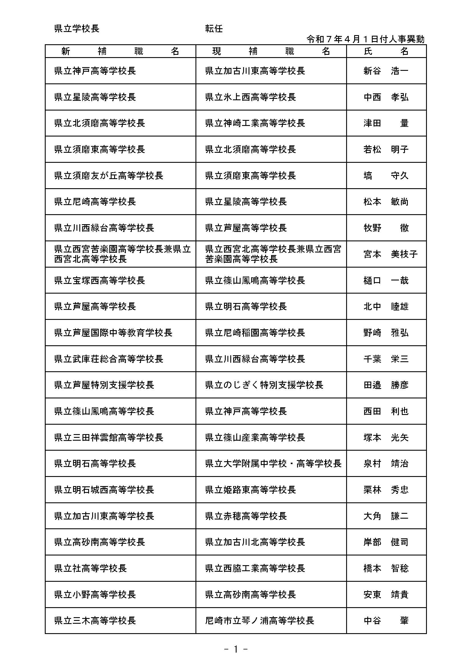 【全掲載】兵庫県 県立学校 校長・教頭など管理職 教職員人事異動 2025年度 2025年04月02日