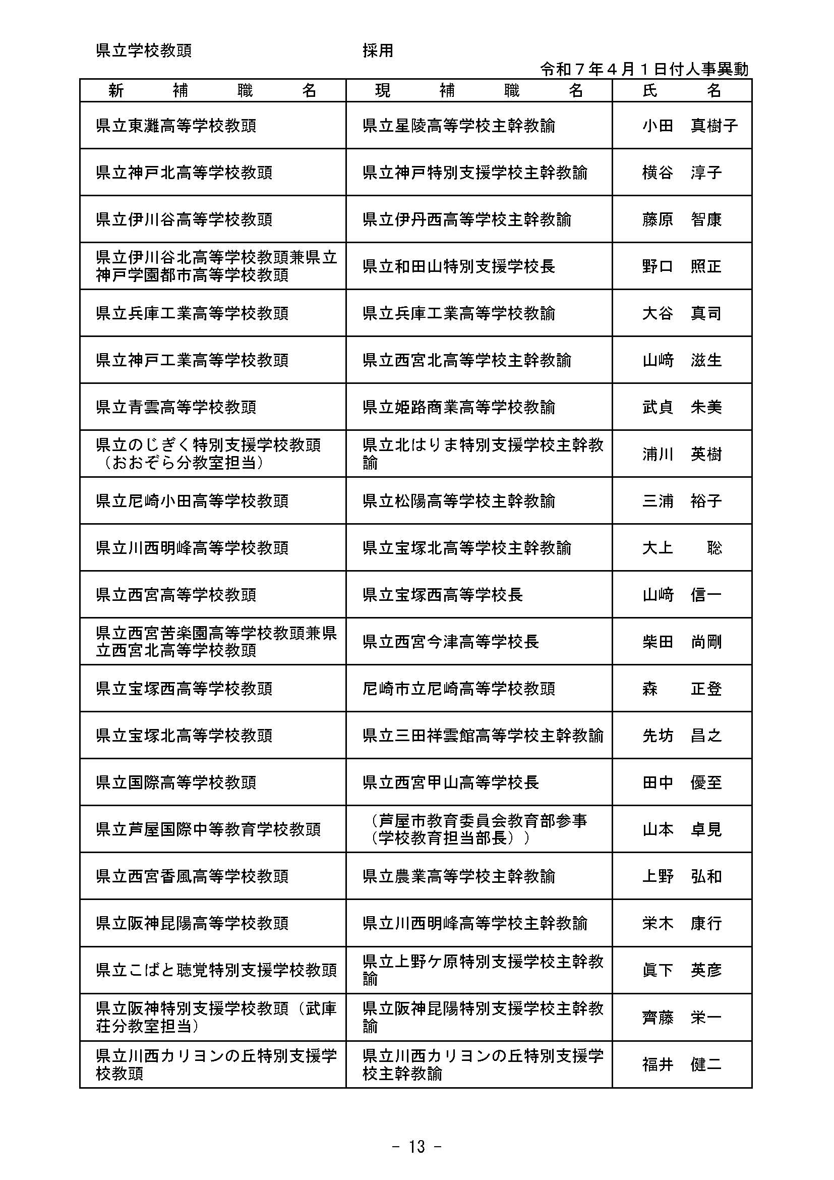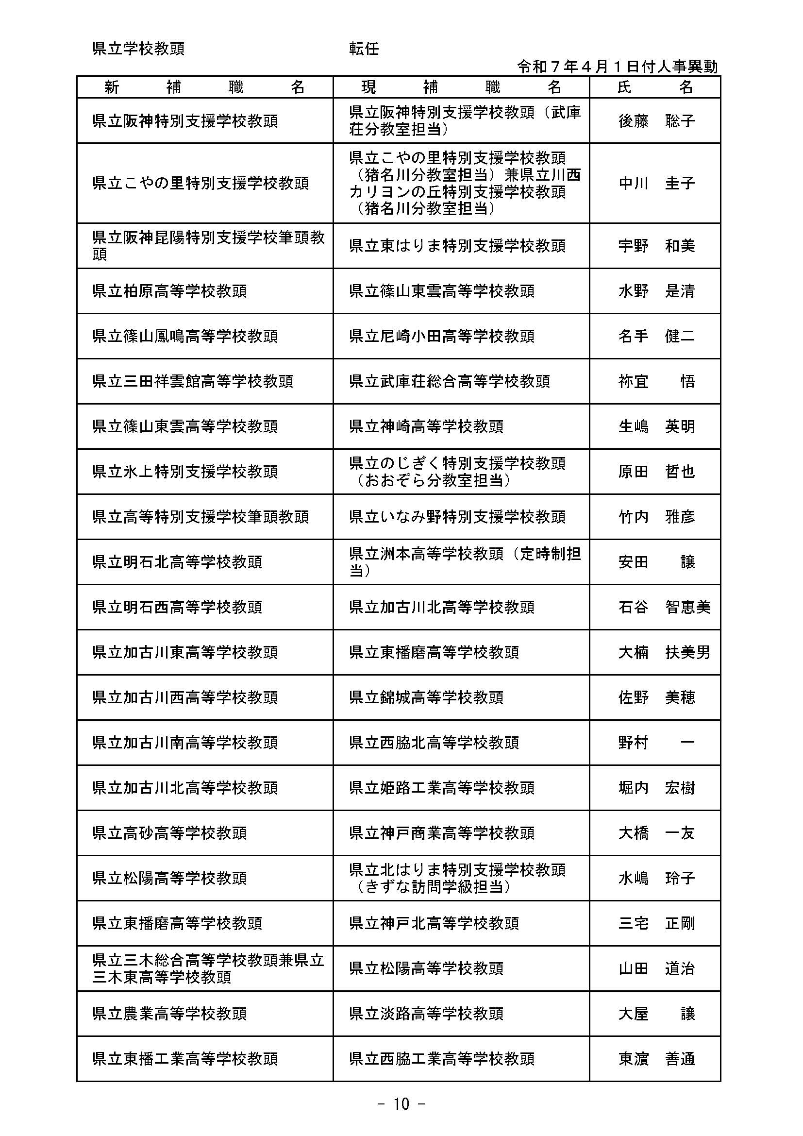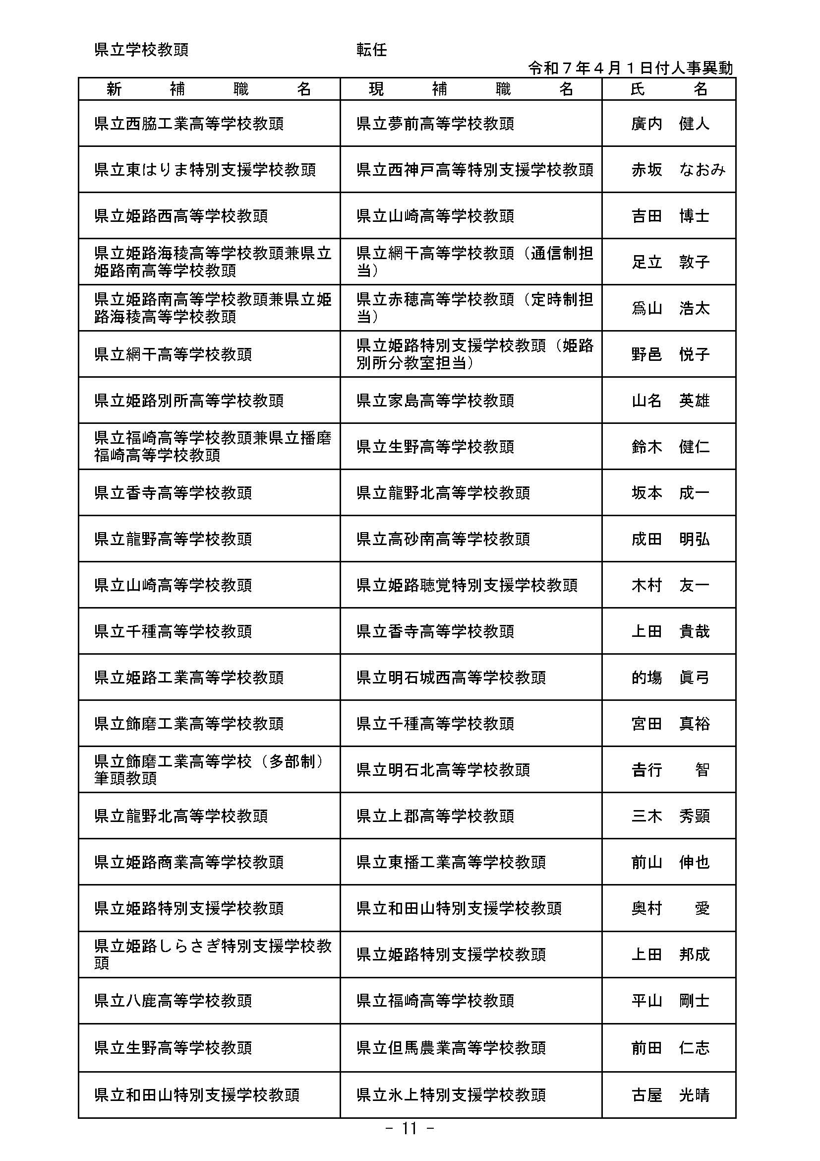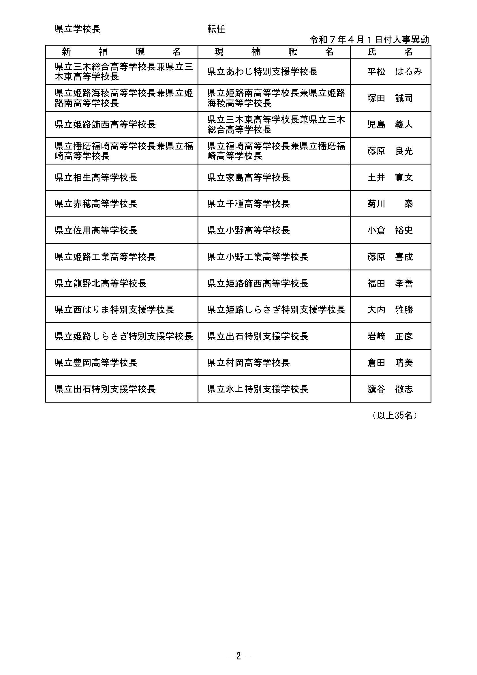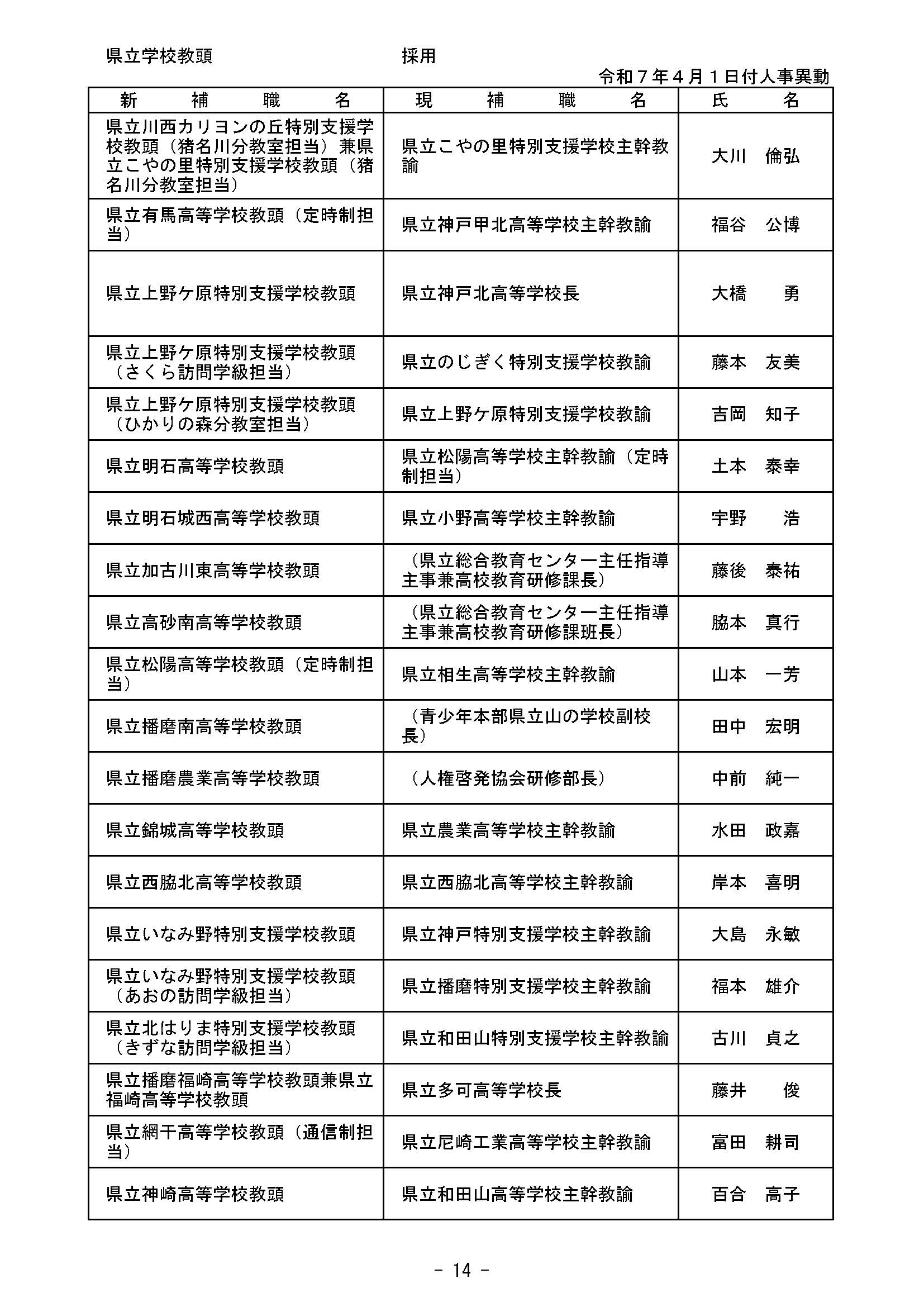 【全掲載】兵庫県 県立学校 校長・教頭など管理職 教職員人事異動 2025年度 2025年04月02日