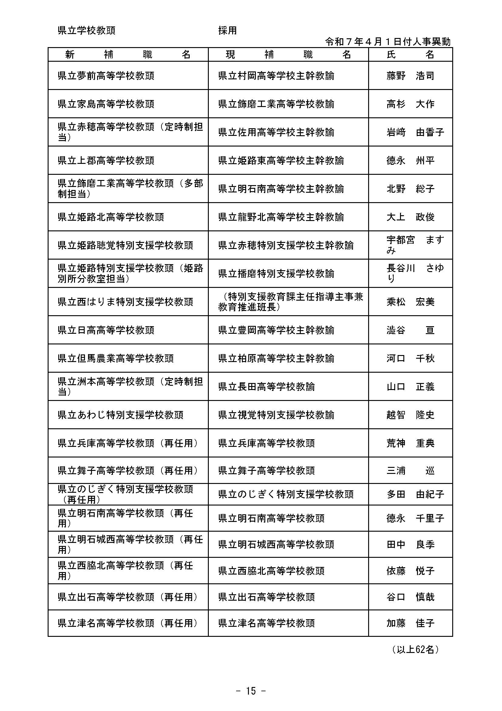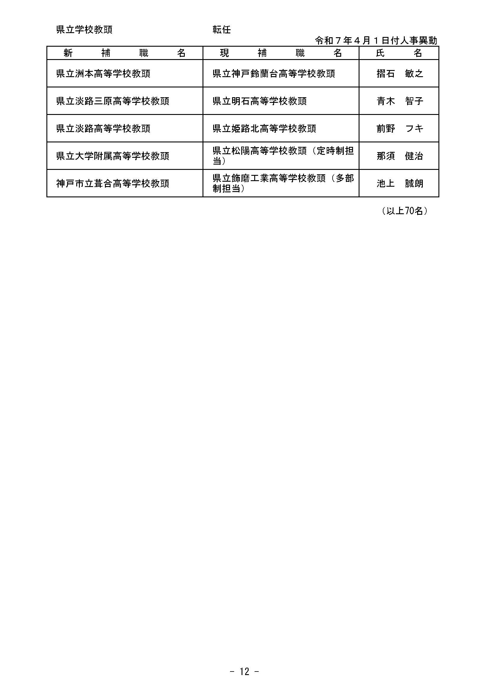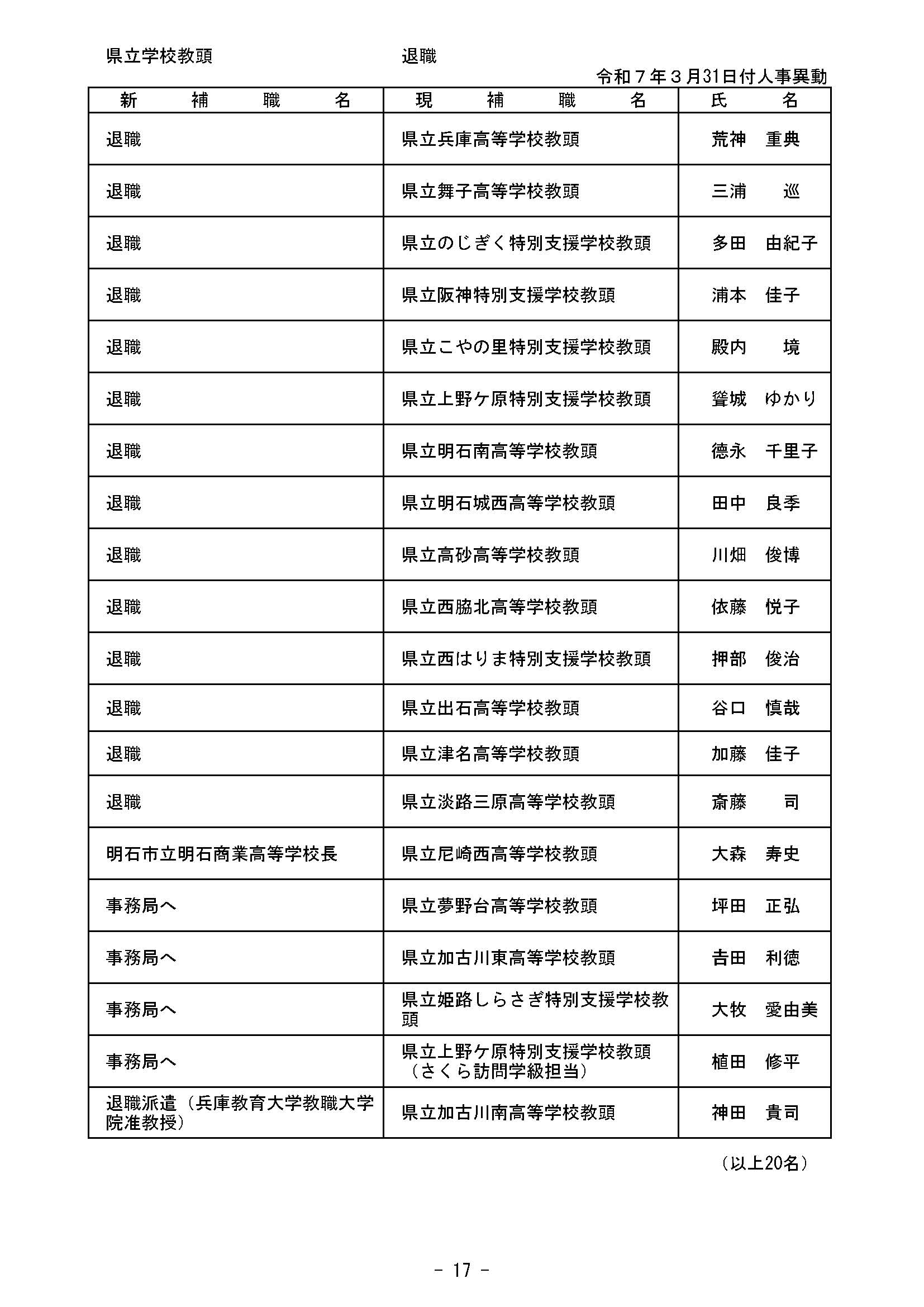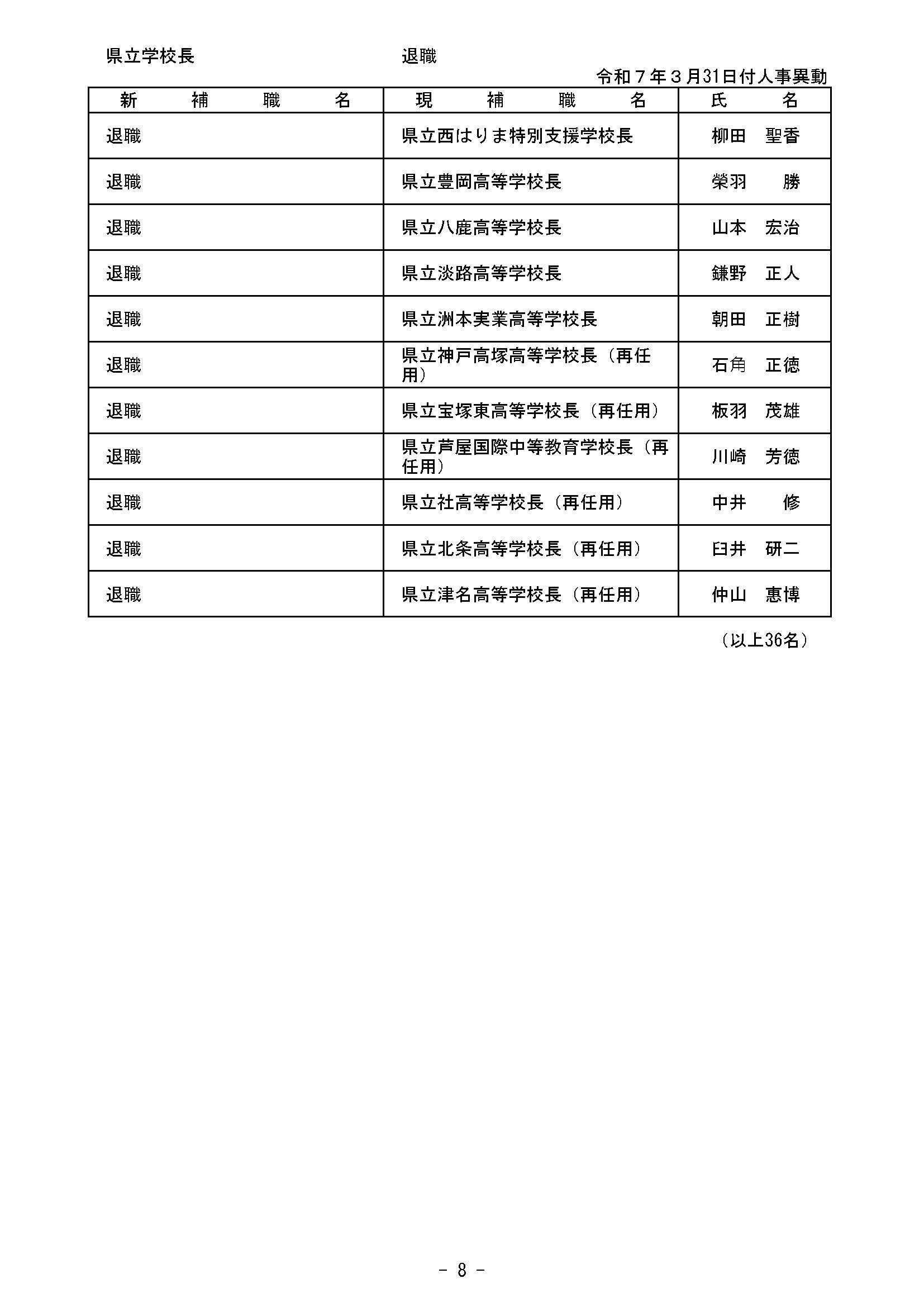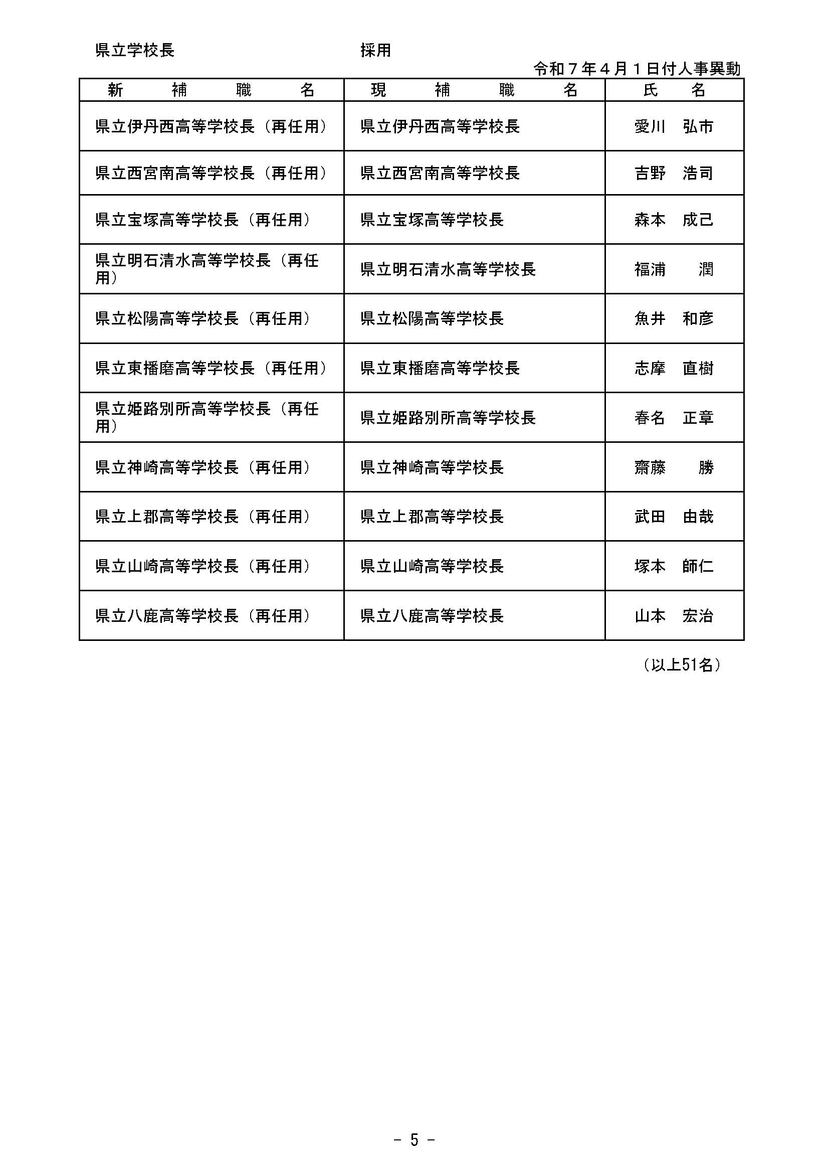 【全掲載】兵庫県 県立学校 校長・教頭など管理職 教職員人事異動 2025年度 2025年04月02日