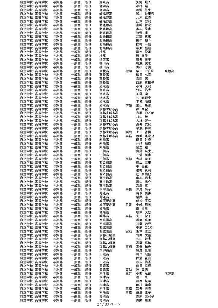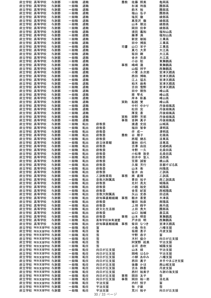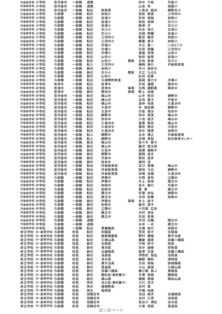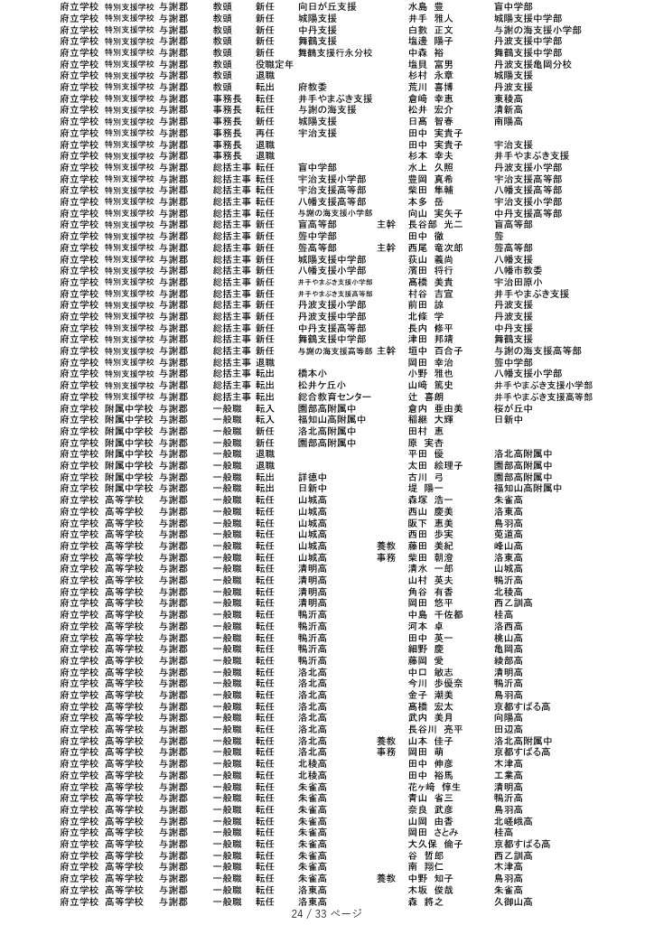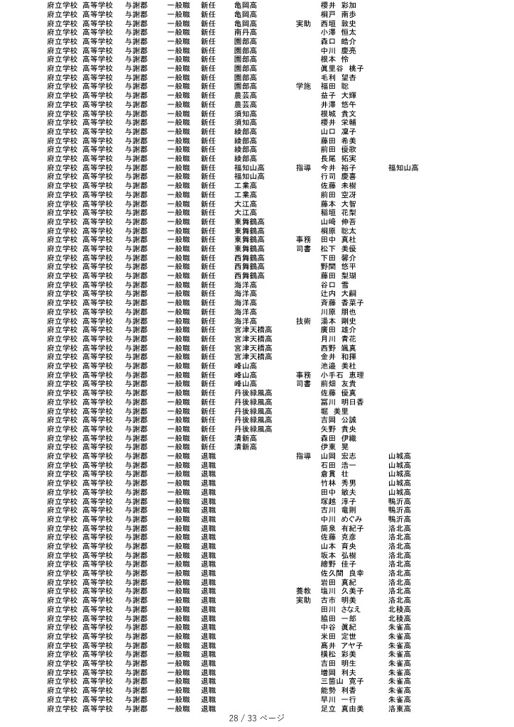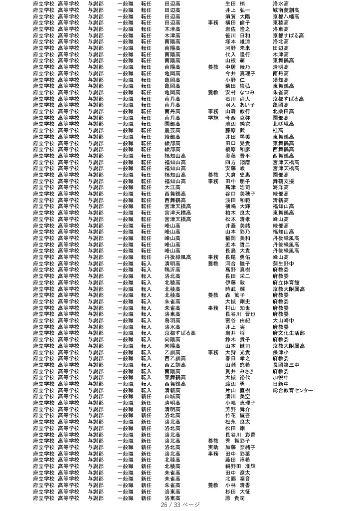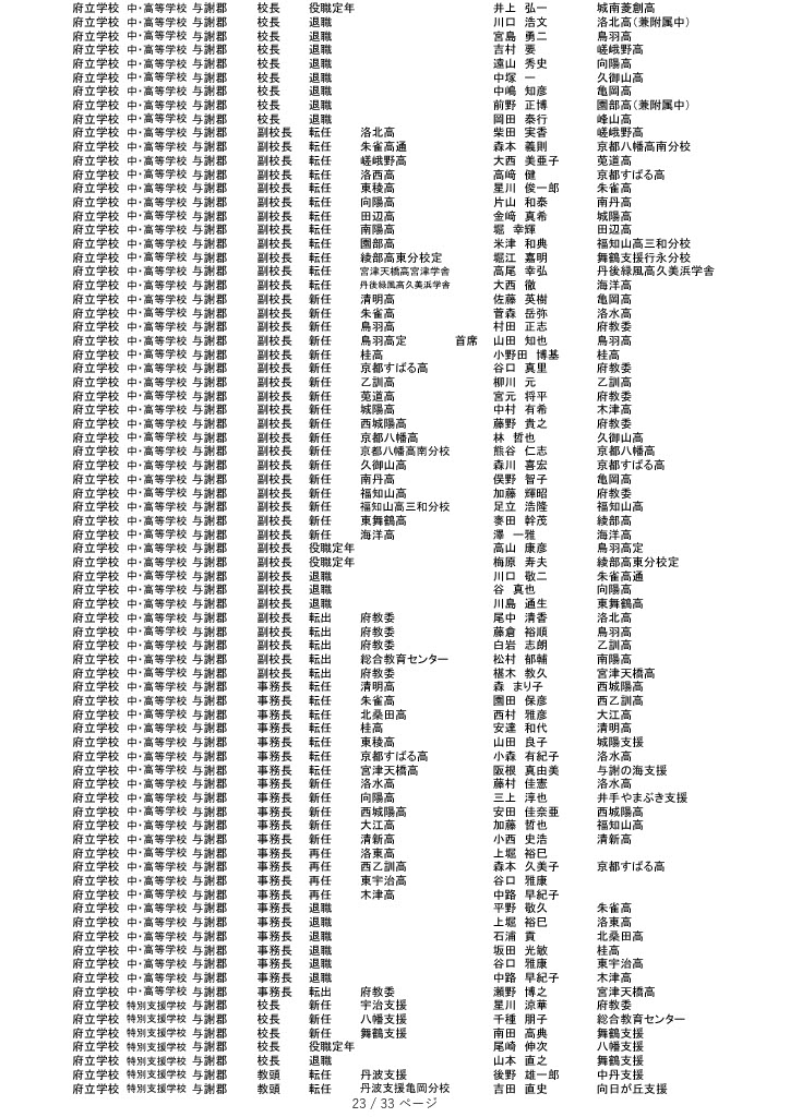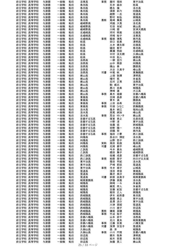 【全掲載】京都府 教職員人事異動 2025年度 2025年04月02日