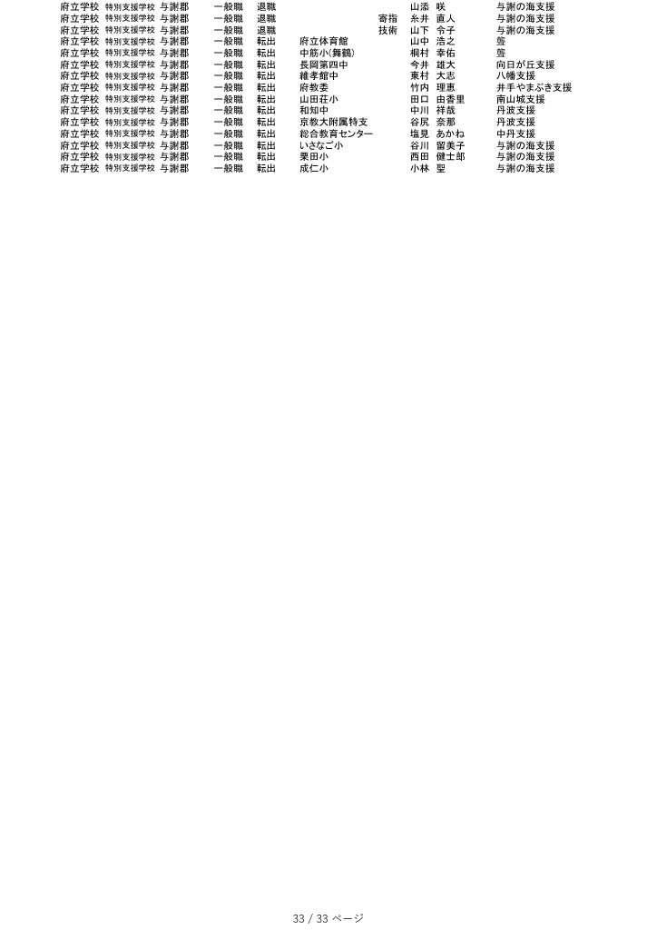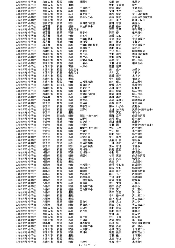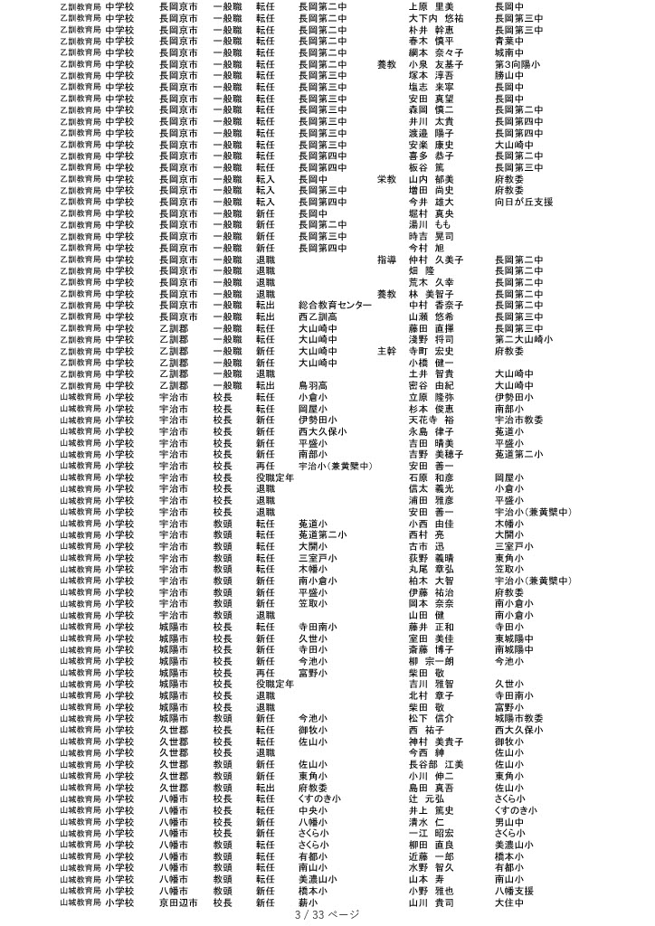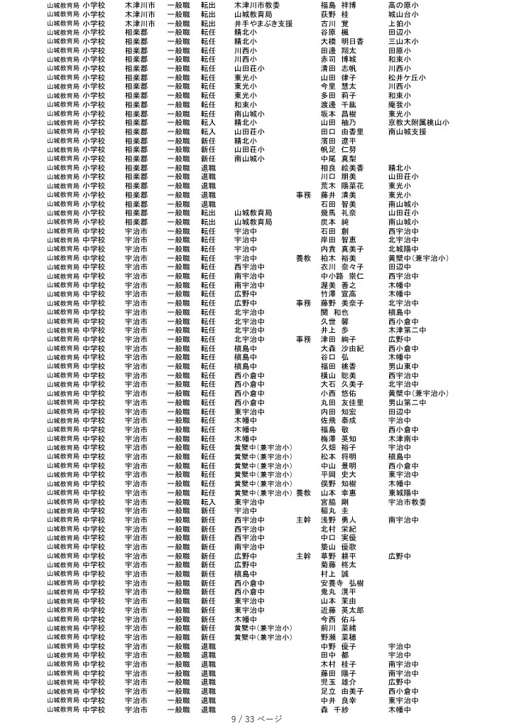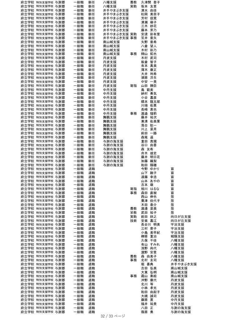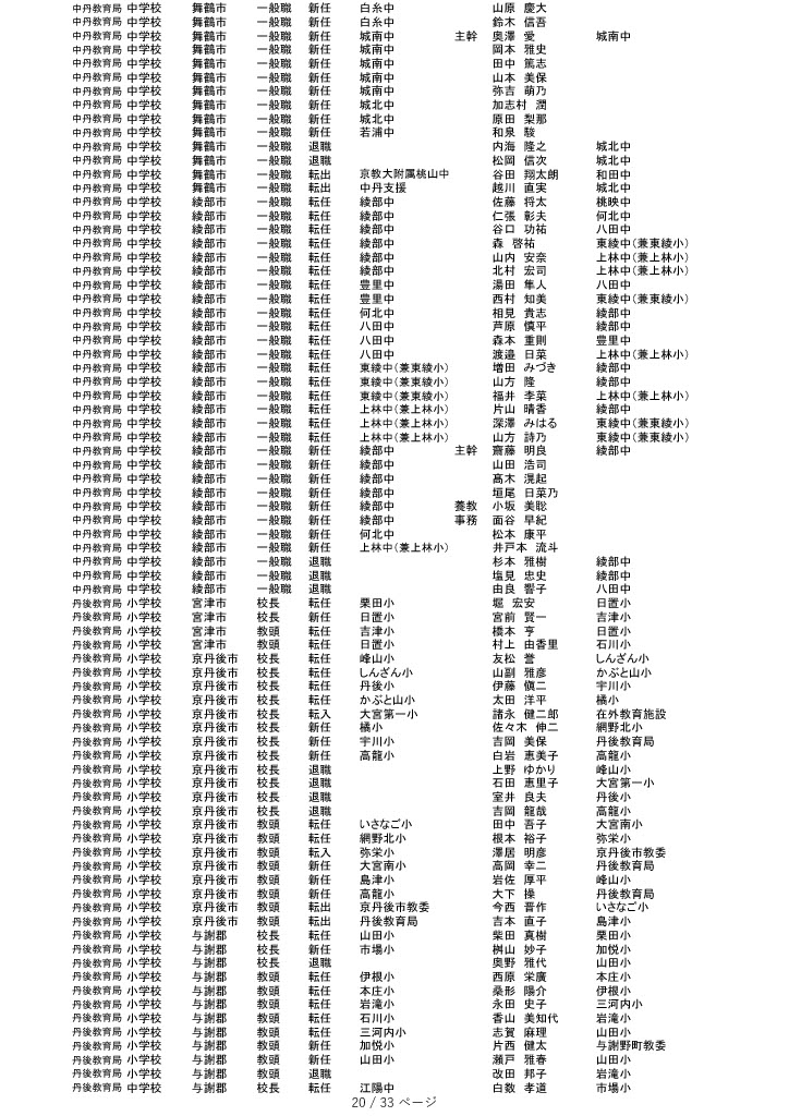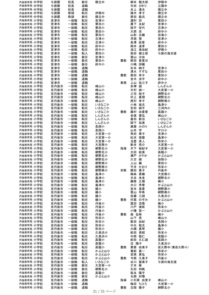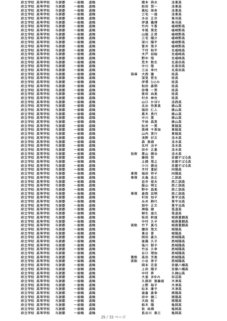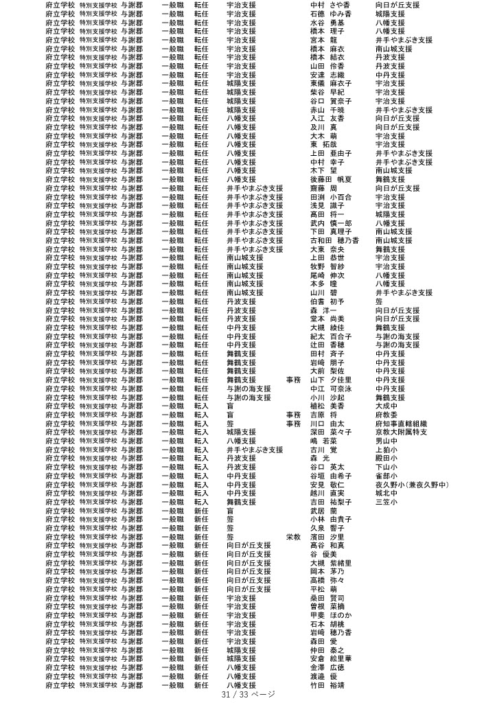 【全掲載】京都府 教職員人事異動 2025年度 2025年04月02日