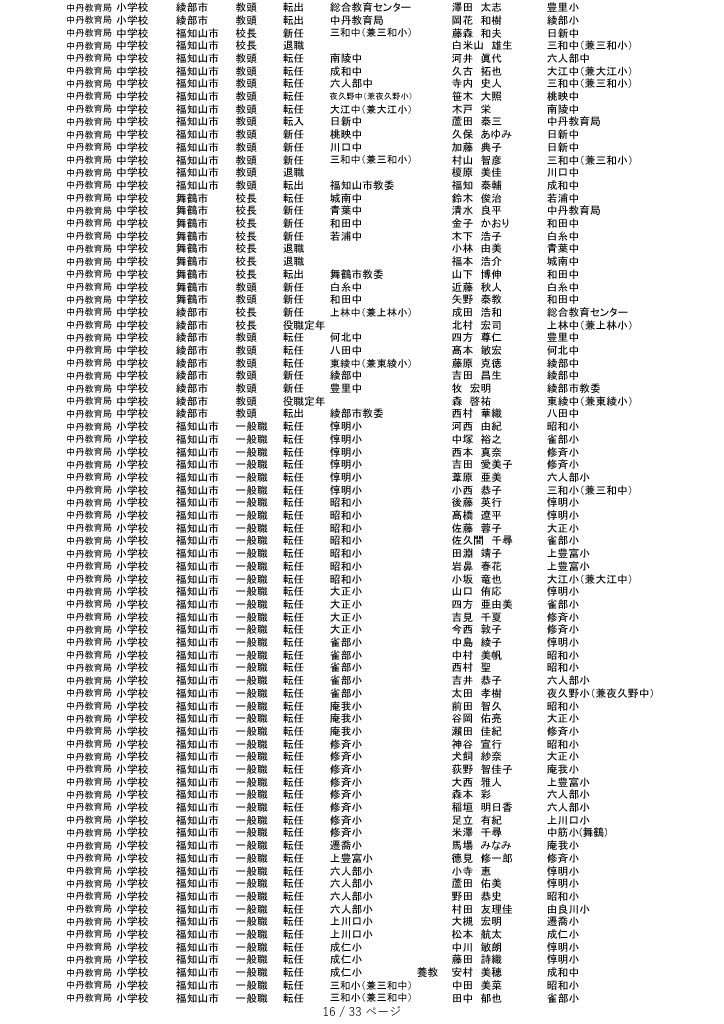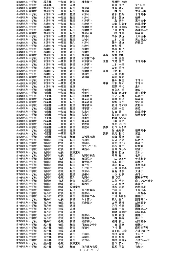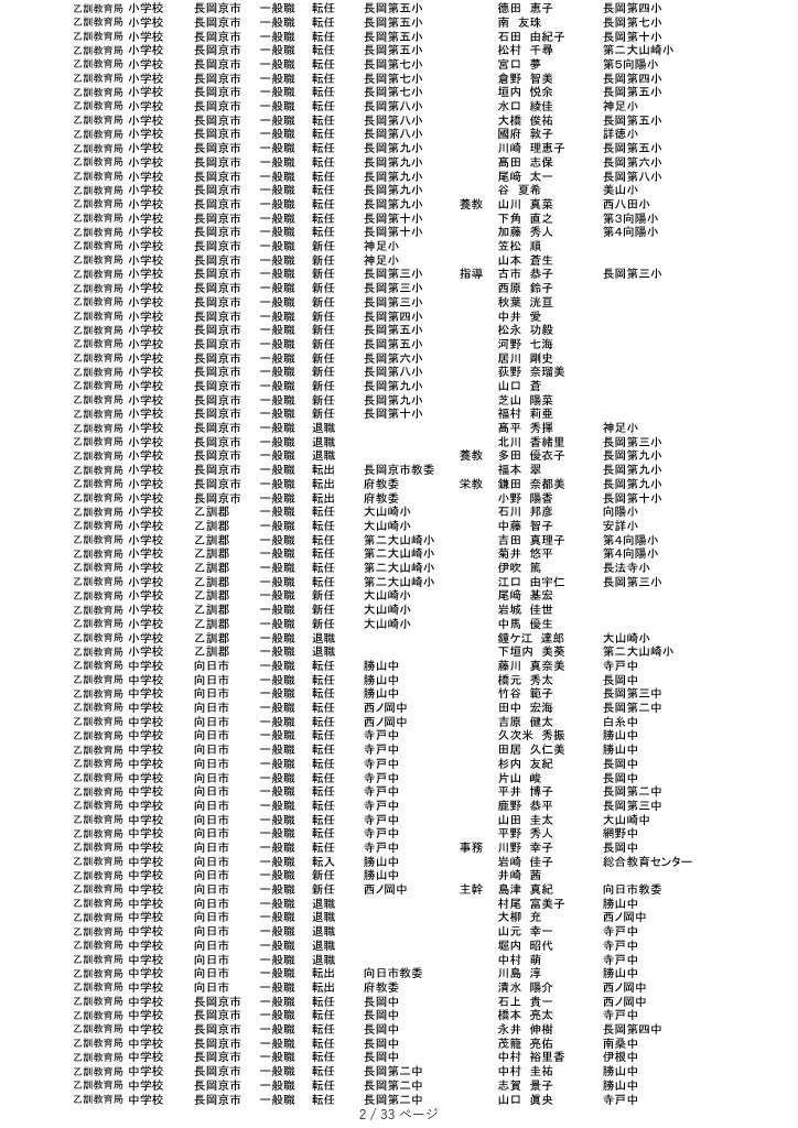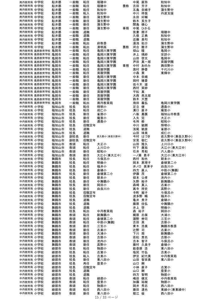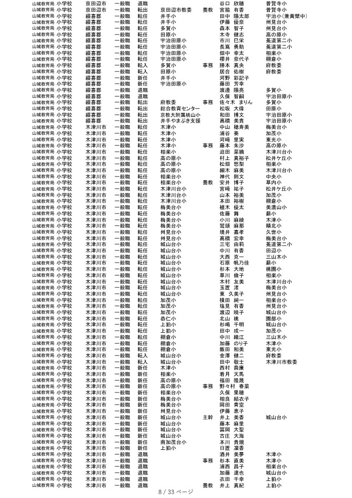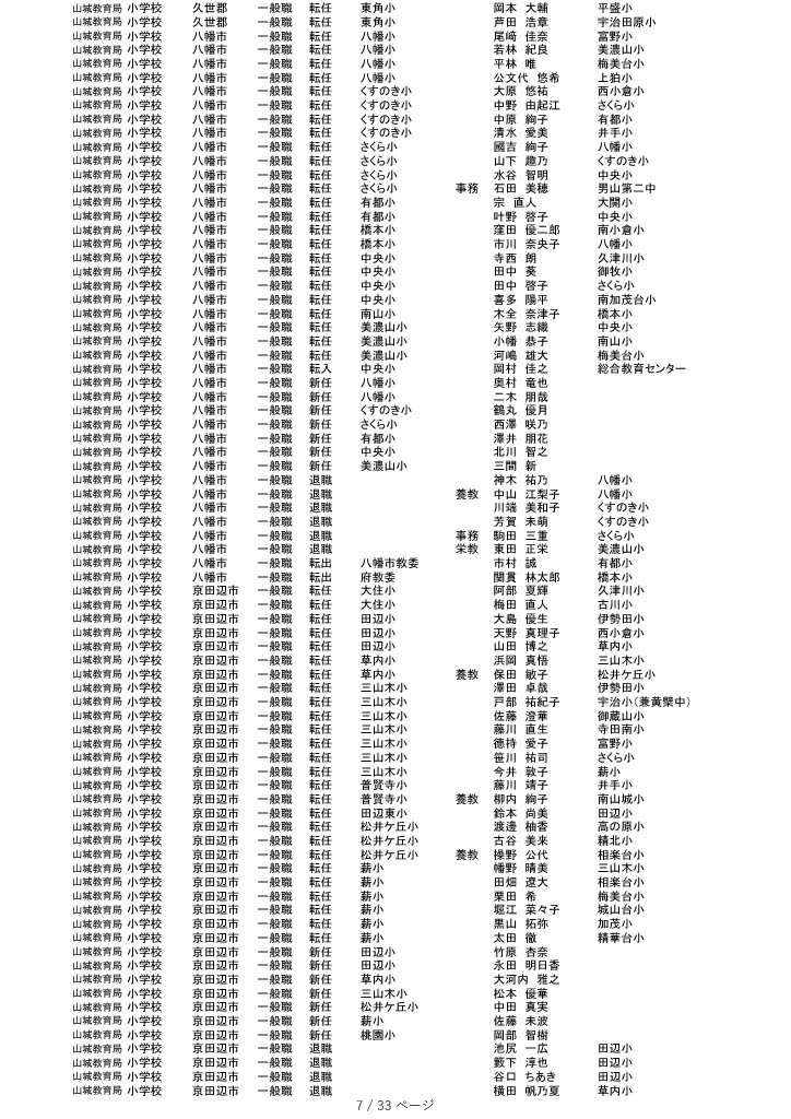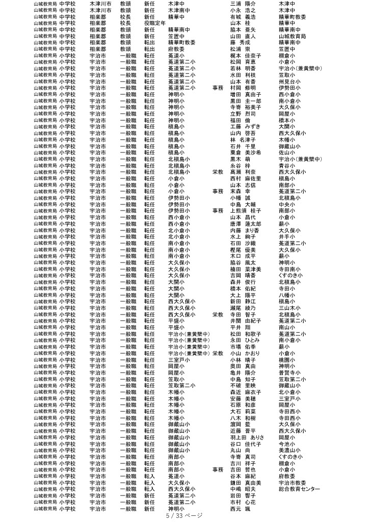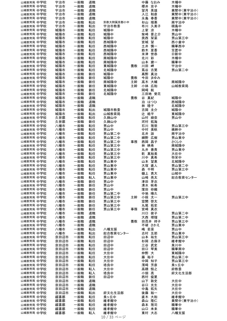 【全掲載】京都府 教職員人事異動 2025年度 2025年04月02日