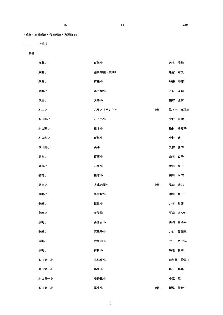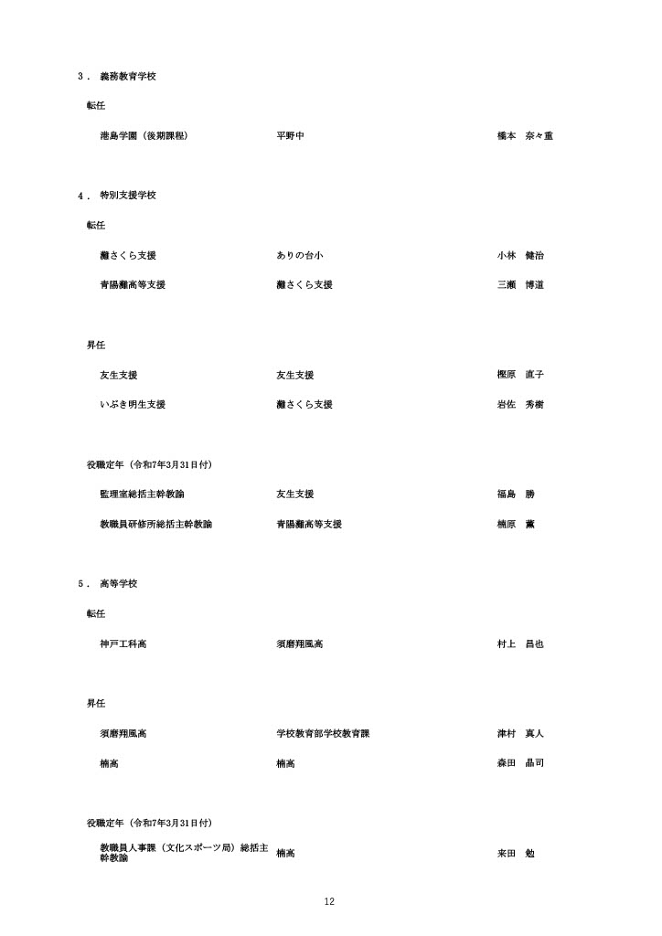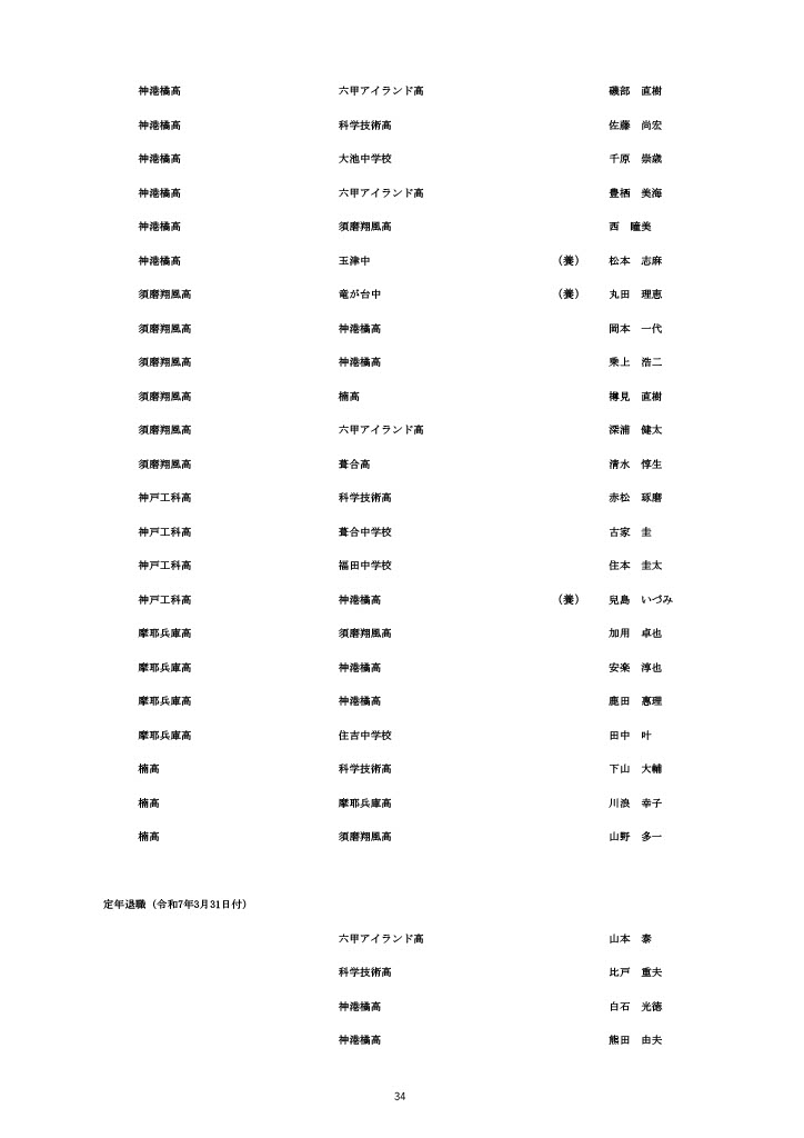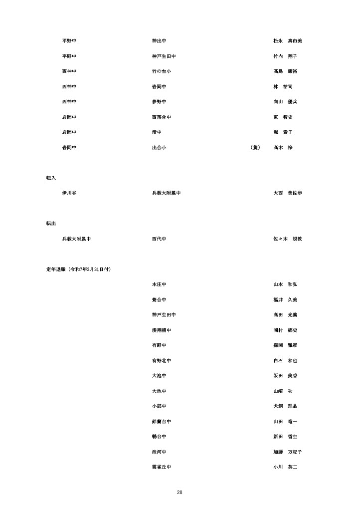 【全掲載】神戸市 小学校・中学校等 教職員人事異動 2025年度 2025年04月02日