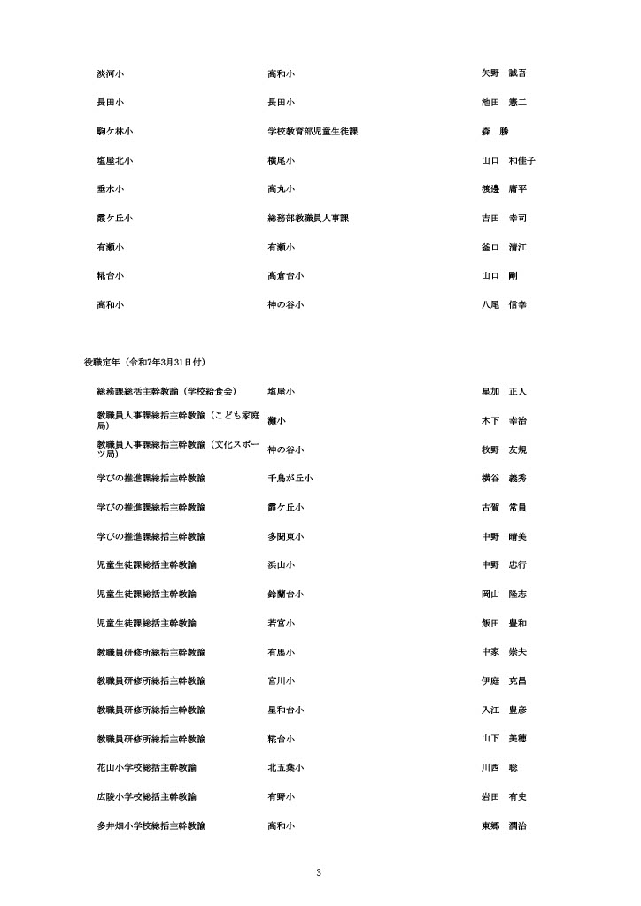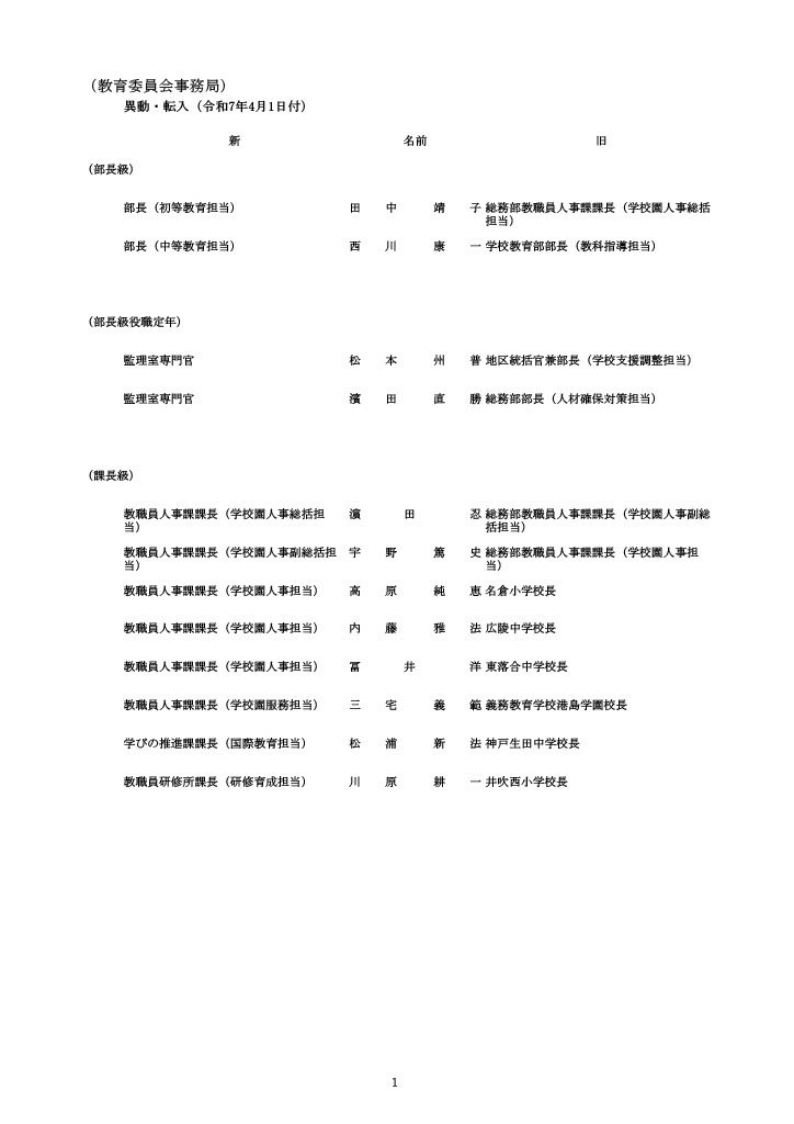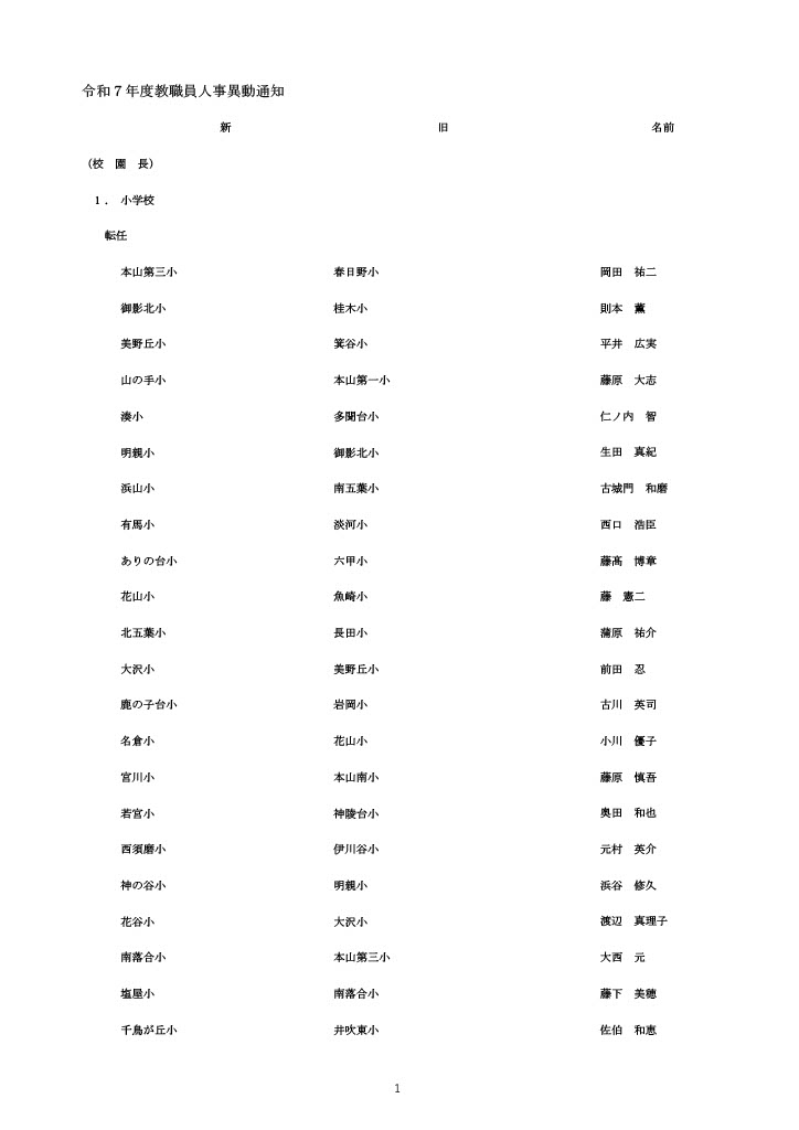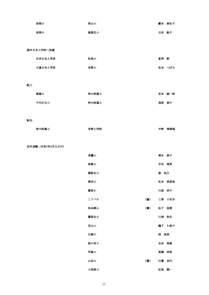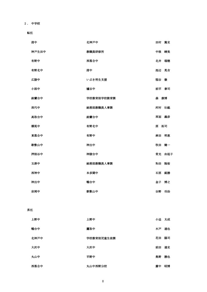 【全掲載】神戸市 小学校・中学校等 教職員人事異動 2025年度 2025年04月02日