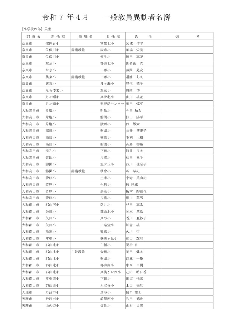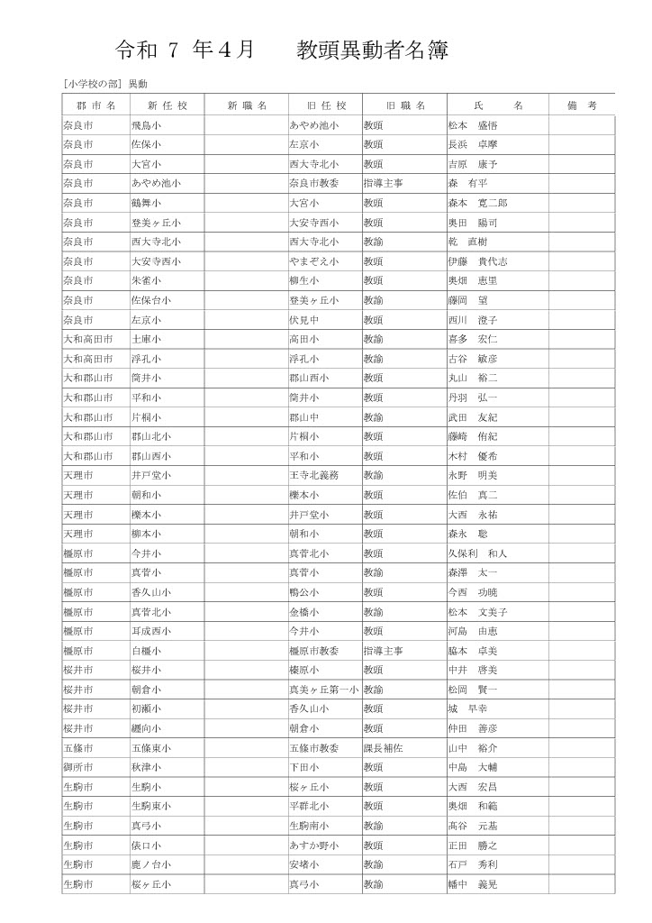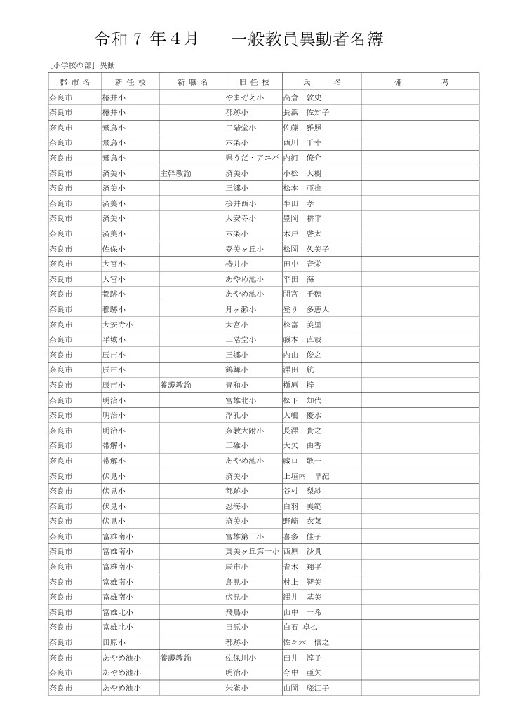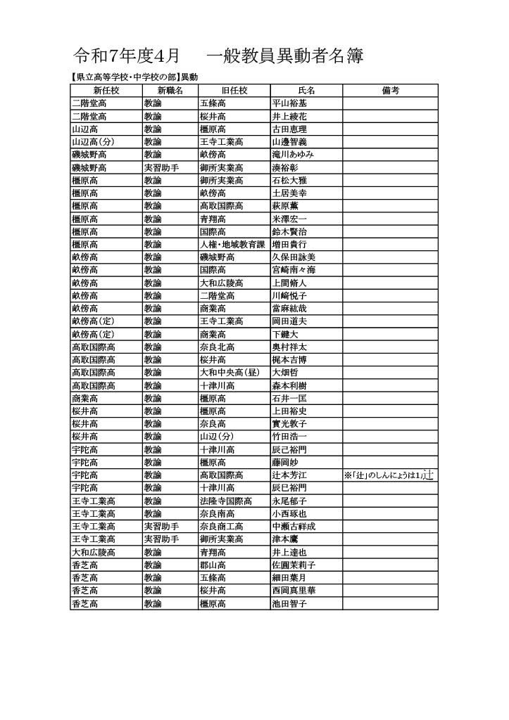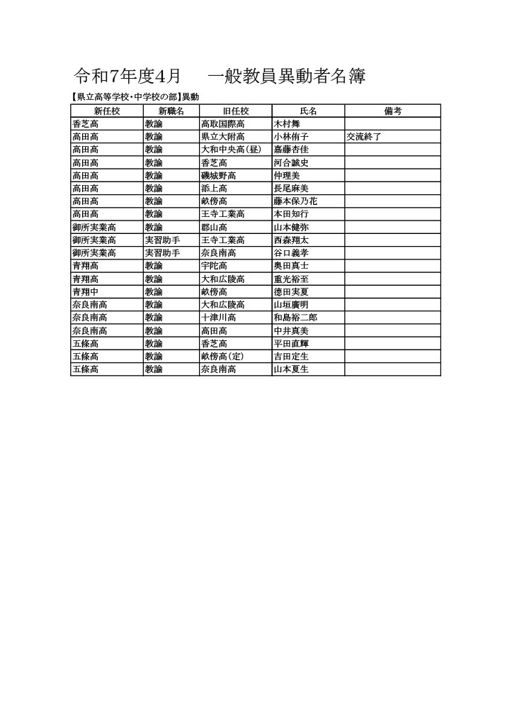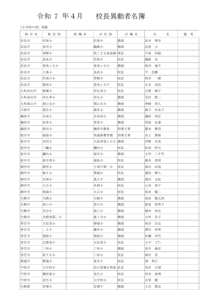 【全掲載】奈良県 小中学校・高校等 教職員人事異動 あの先生はどの学校に? 2025年度 2025年04月21日