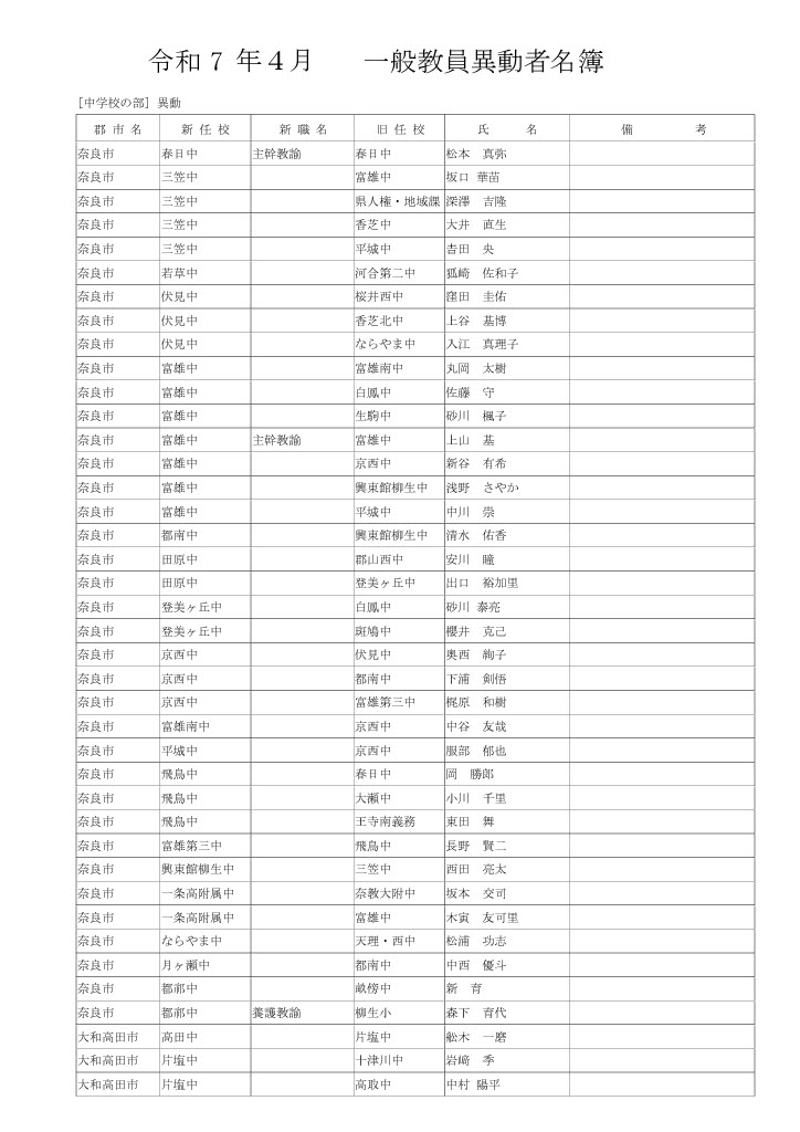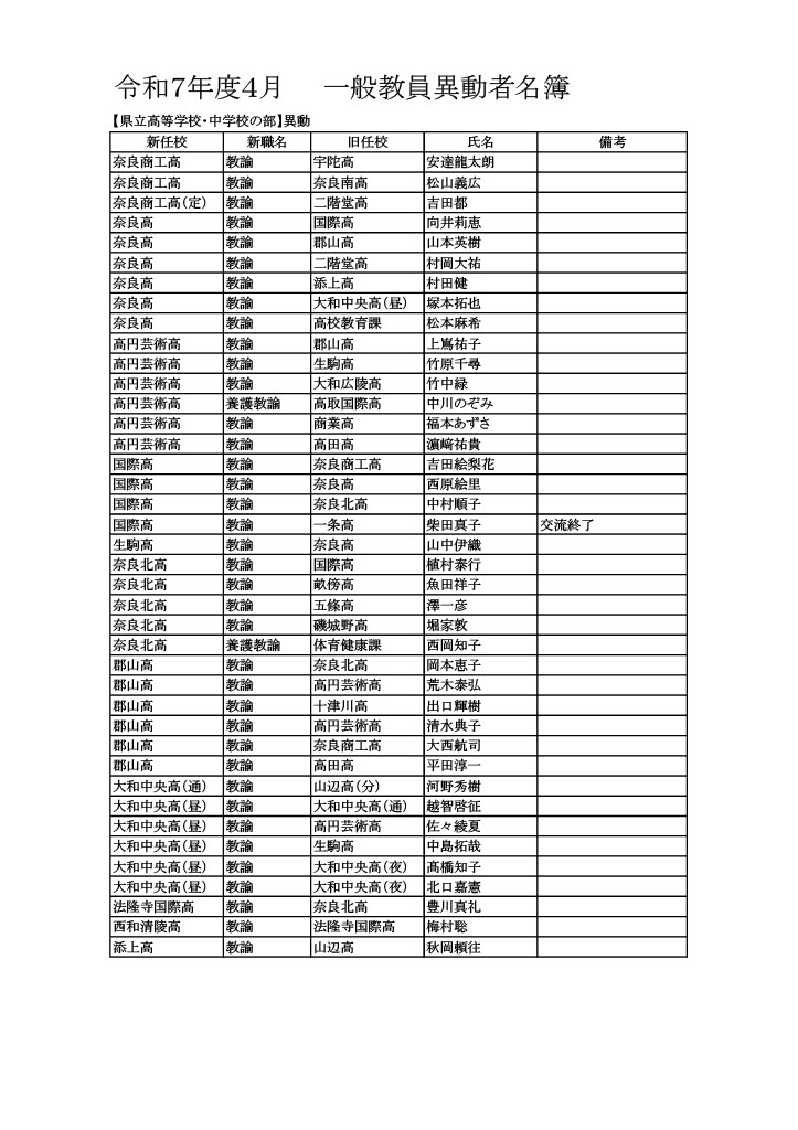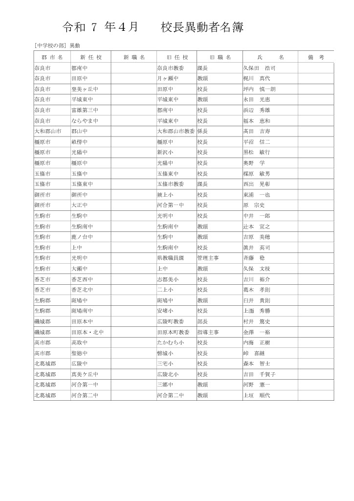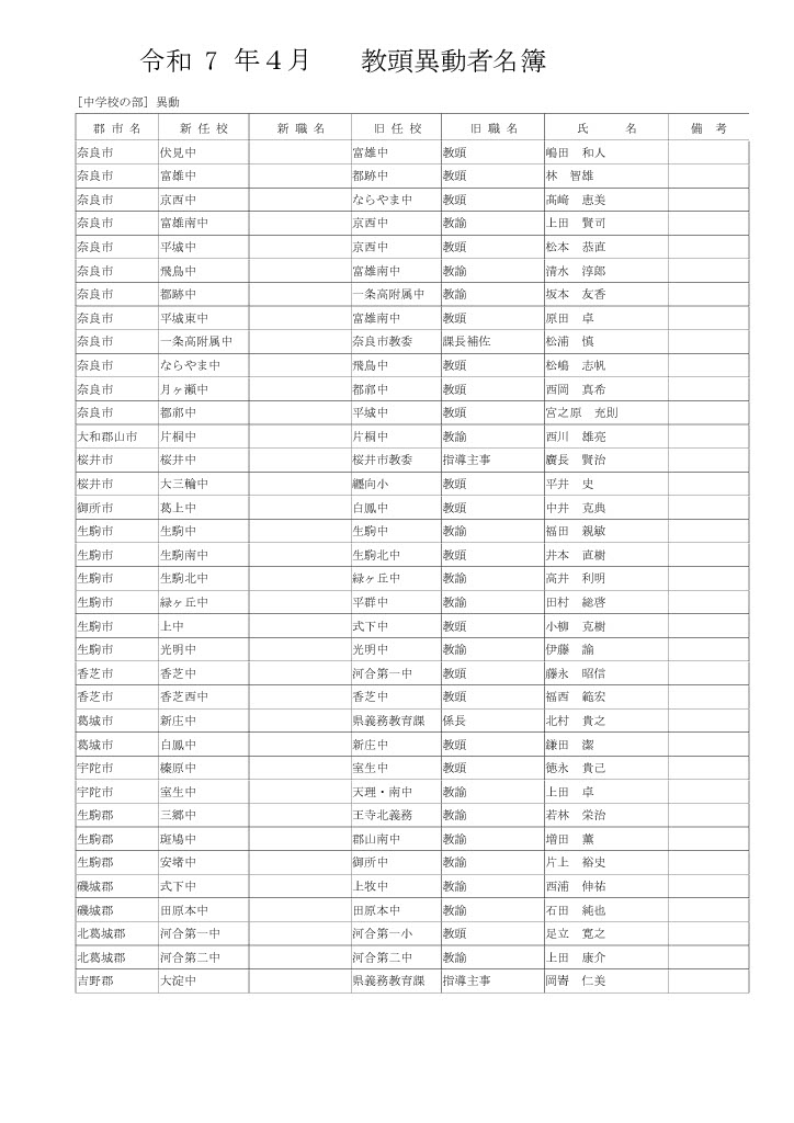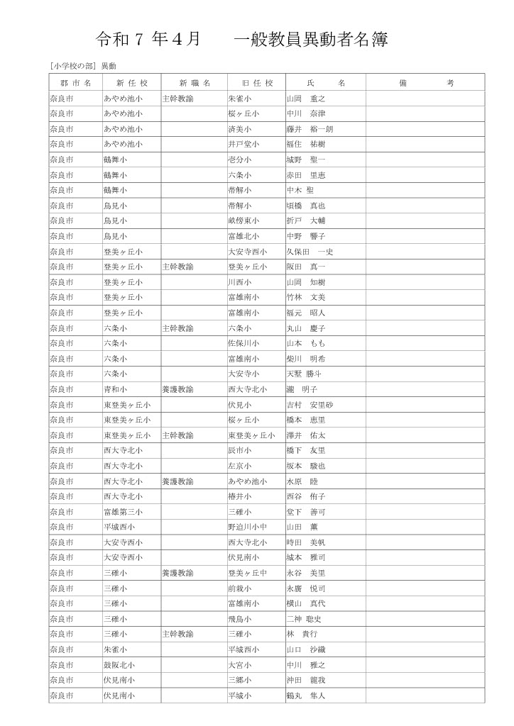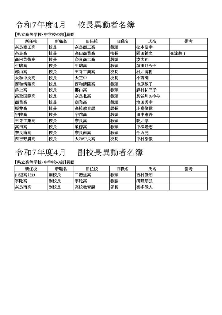 【全掲載】奈良県 小中学校・高校等 教職員人事異動 あの先生はどの学校に? 2025年度 2025年04月21日