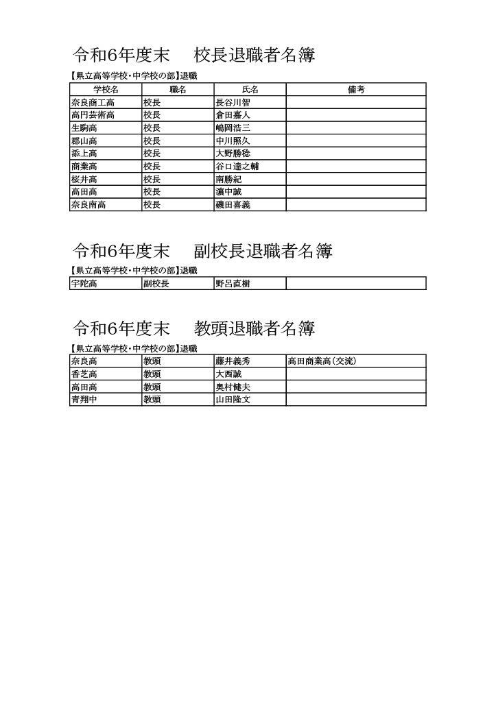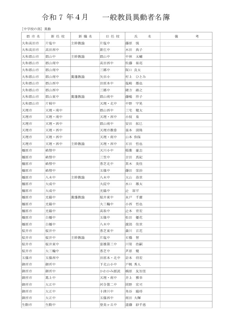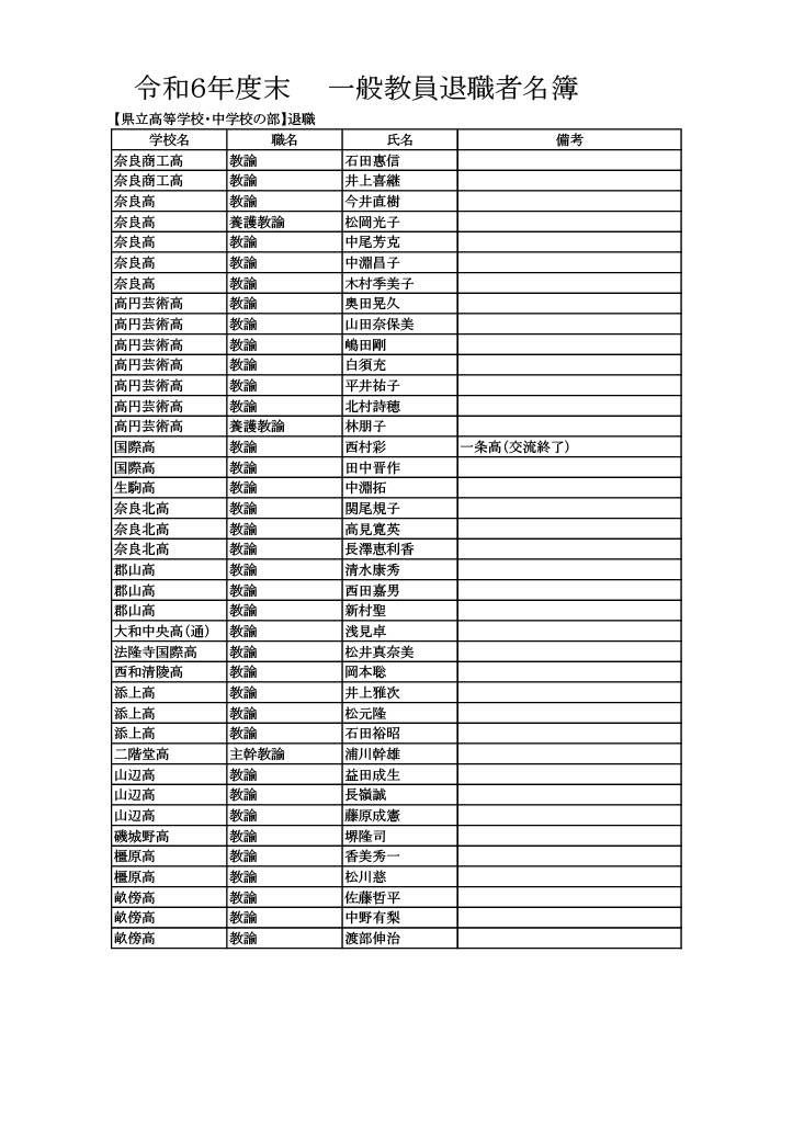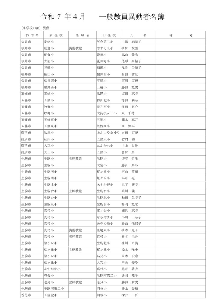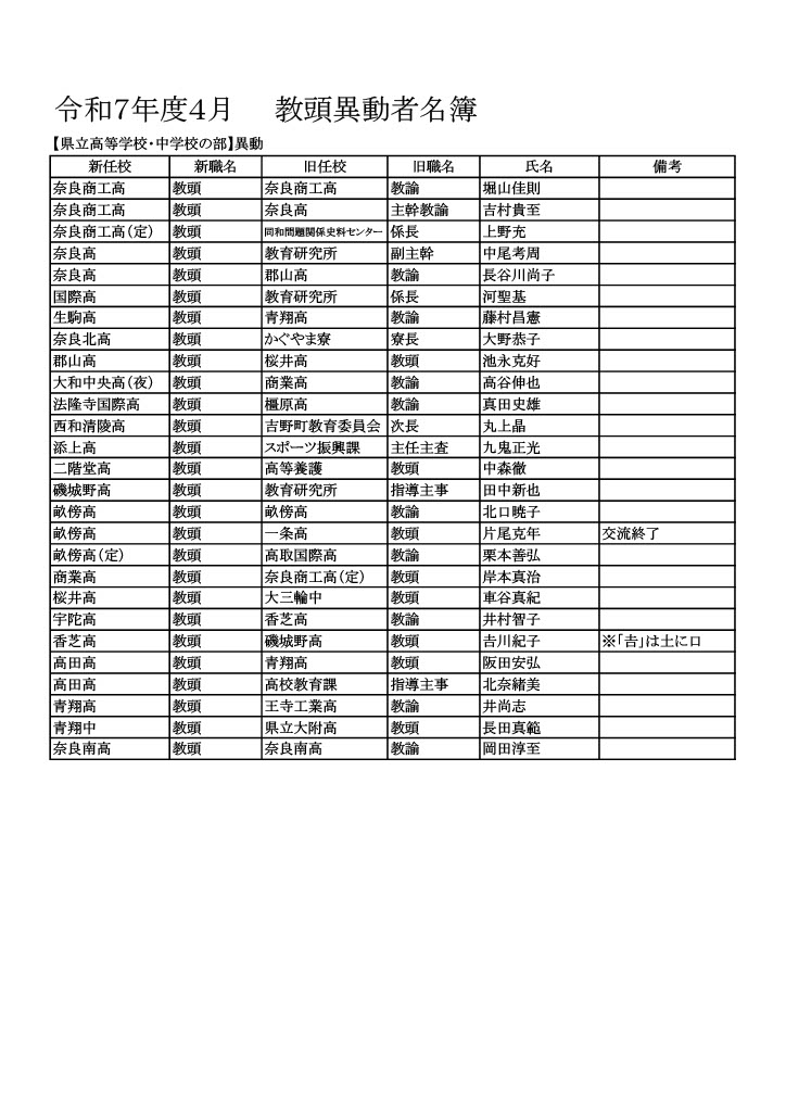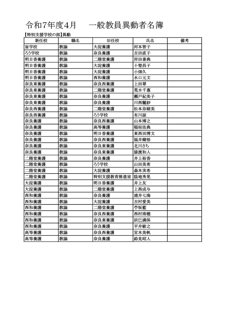 【全掲載】奈良県 小中学校・高校等 教職員人事異動 あの先生はどの学校に? 2025年度 2025年04月21日