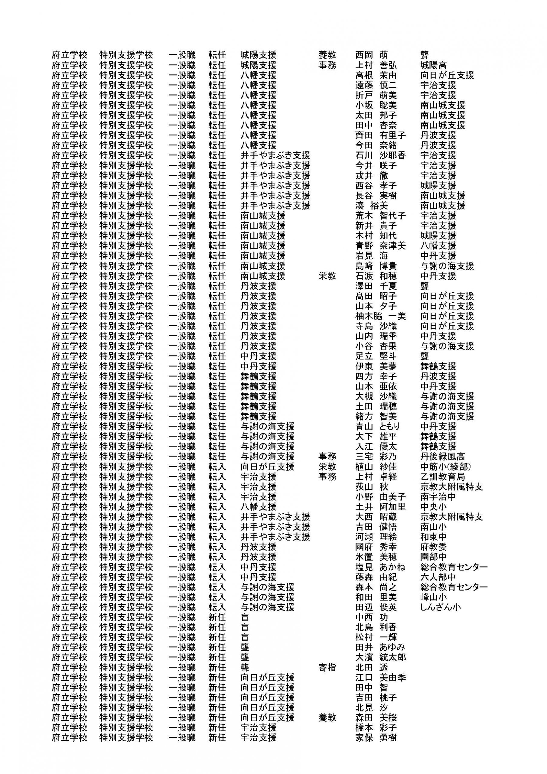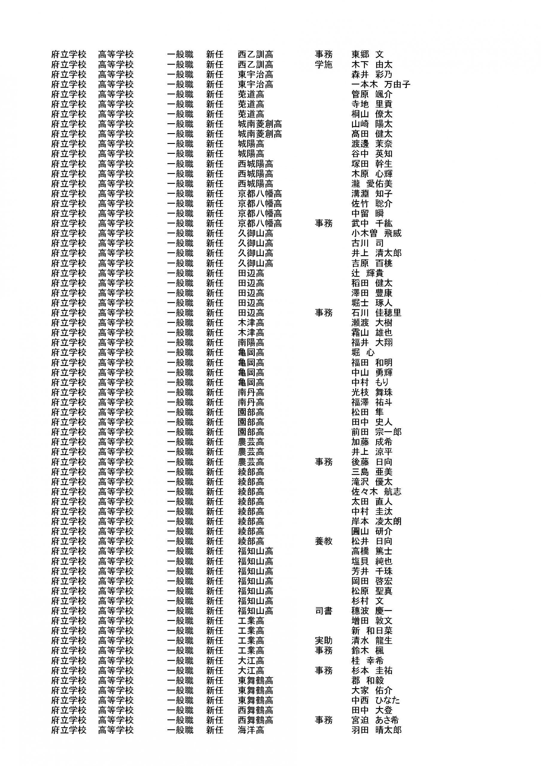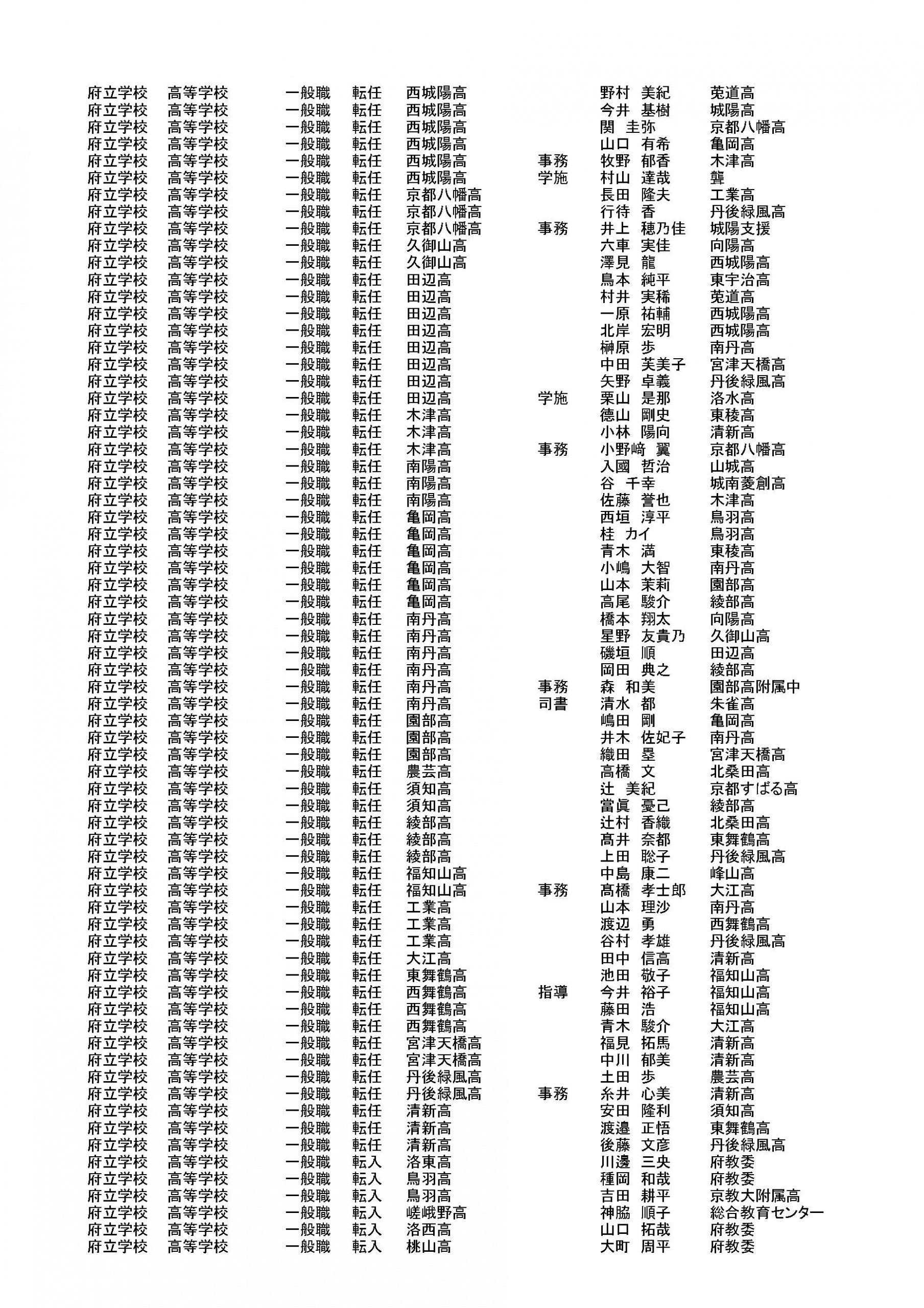 【全掲載】あの先生はどこへ 京都府 教職員人事異動(府立高校) 2026年04月02日