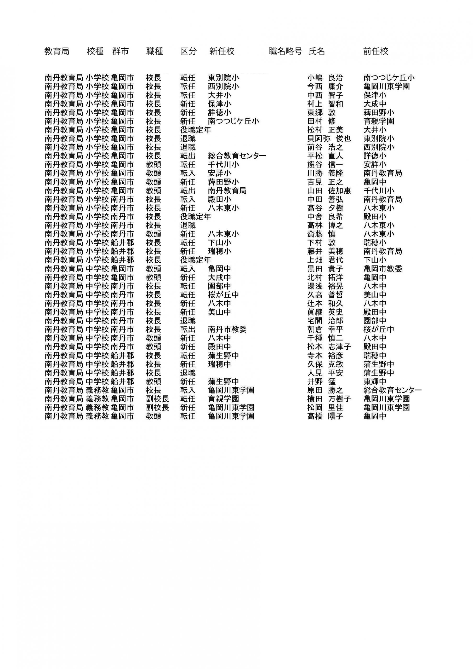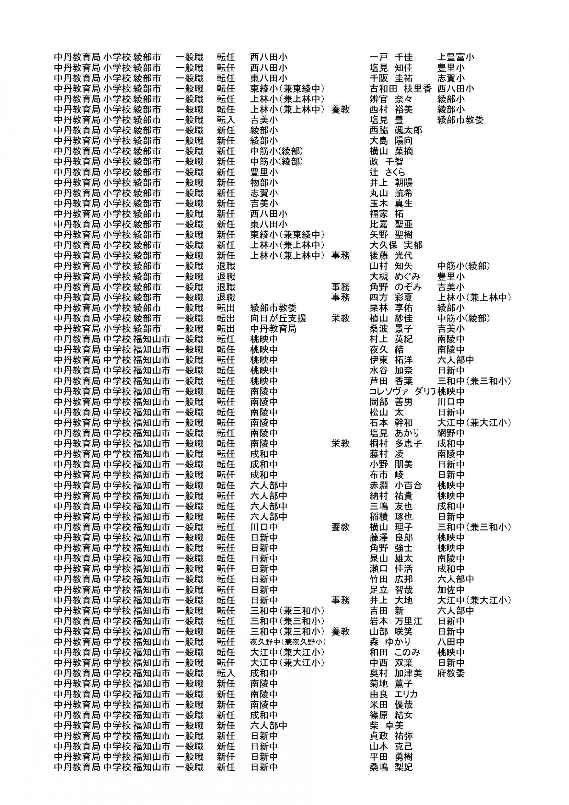 【全掲載】あの先生はどこへ 京都府 教職員人事異動(南丹教育局・中丹教育局・丹後教育局) 2026年04月02日