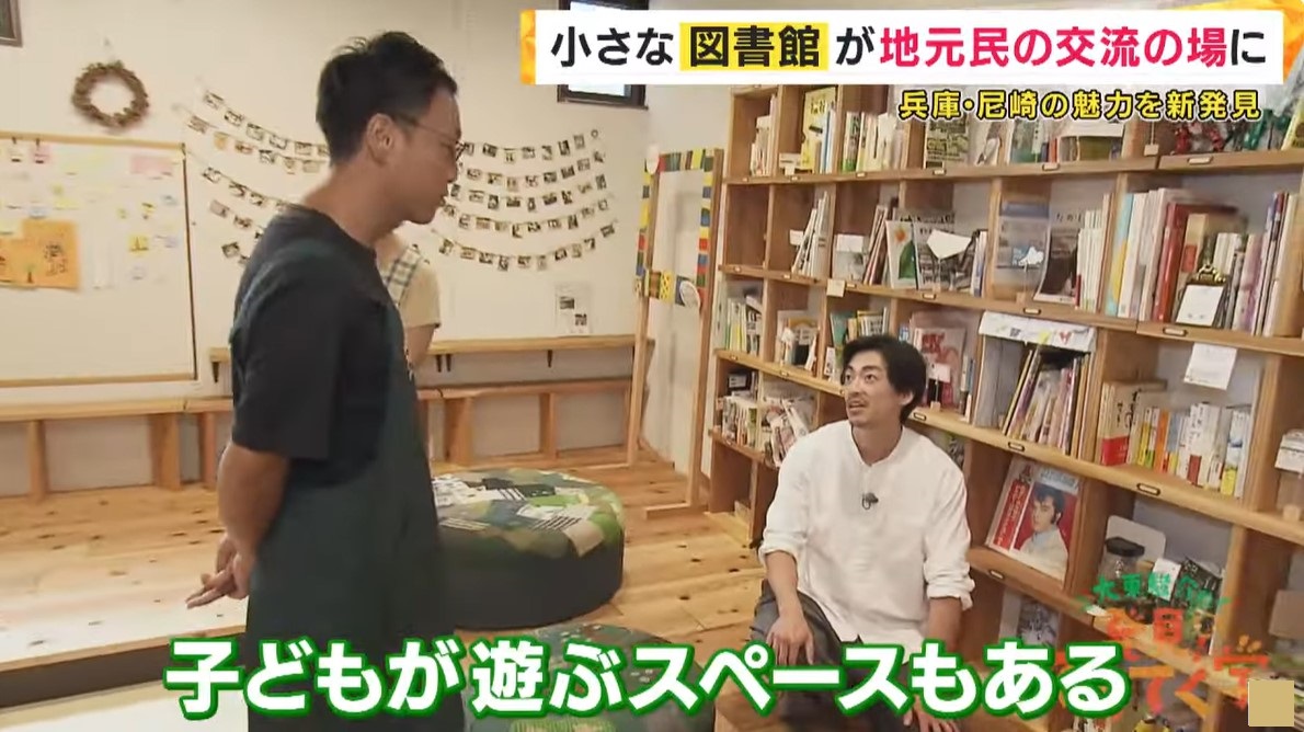 続いて尼崎中央商店街と交差する三和本通商店街へ。こちらには、小さな私設の図書館「さんとしょ」がありました。この図書館は、オーナーがお金を出して棚を借り、自分のおすすめの本を並べるというユニークなシステムを採用しています。さんとしょを運営している柏木洸一さんは、「人の家の本棚をのぞいて好きな本を借りられるみたいな」と話し、この図書館が地域住民の交流の場になってほしいと願っています。