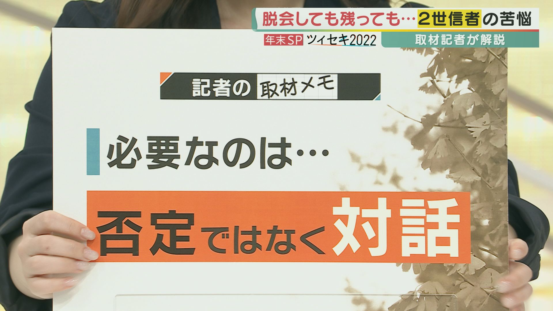 「家族が壊れてしまうので、それを超えてまで脱会するのは本当に難しくて。 例えば子供が産まれても孫に合わせることが出来ないとか、そういう関係でい続けなければいけない」
