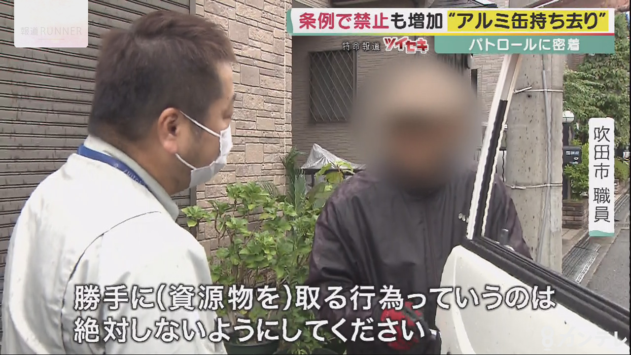 「吹田市役所 環境部 事業課なんですが、今何をされていましたかね? 勝手に資源物を取る行為っていうのは絶対しないようにしてください」