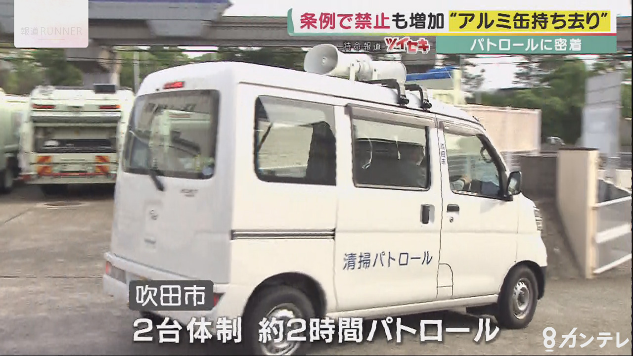 吹田市では車2台に分かれて、午前6時半すぎから午前8時半ごろまで、およそ2時間パトロールを続けています。