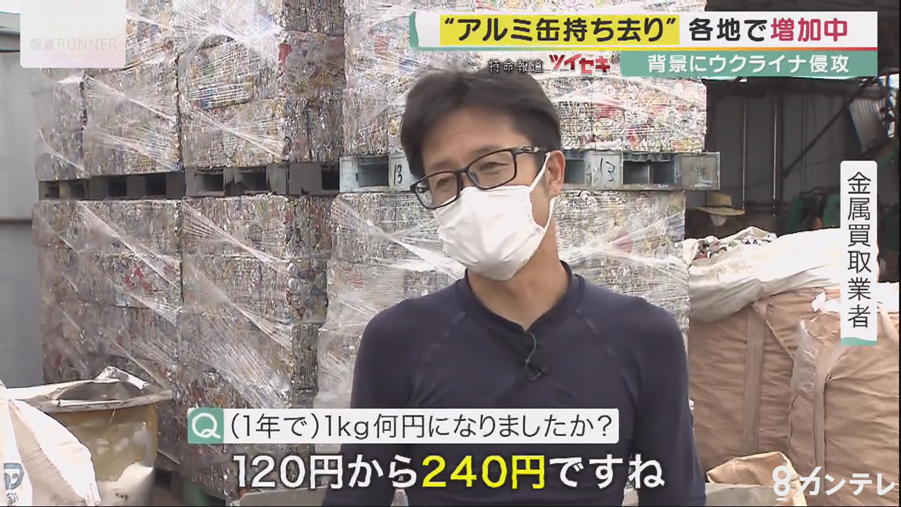 「(アルミ缶の買取価格は)約2倍ほどに上がってますね」
